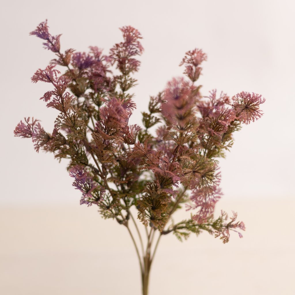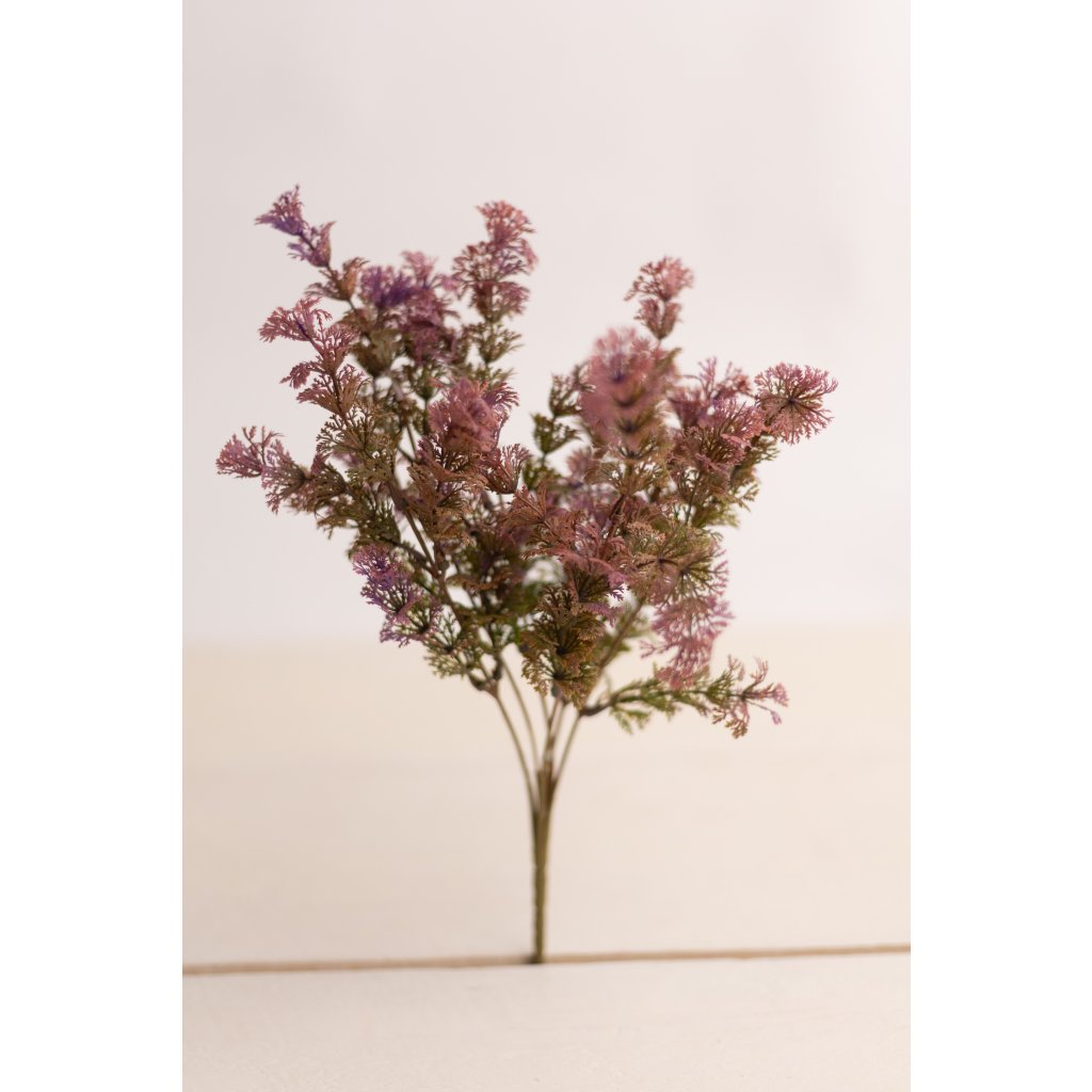 Jemná dekoratívna kytička riasy v ružovom odtieni zaujme svojou ľahkou, vzdušnou štruktúrou a detailným spracovaním. Šesť tenkých stopiek s bohato členenými vetvičkami vytvára prirodzený a elegantný vzhľad, ktorý krásne doplní rôzne aranžmány. S výškou 33 cm je ideálna do celoročných dekorácií, vencov, kytíc, ikebán aj moderných interiérových doplnkov. Skvelo sa kombinuje s inou zeleňou, kvetmi aj prírodnými materiálmi a dodá dekoráciám jemný farebný akcent a ľahkosť.