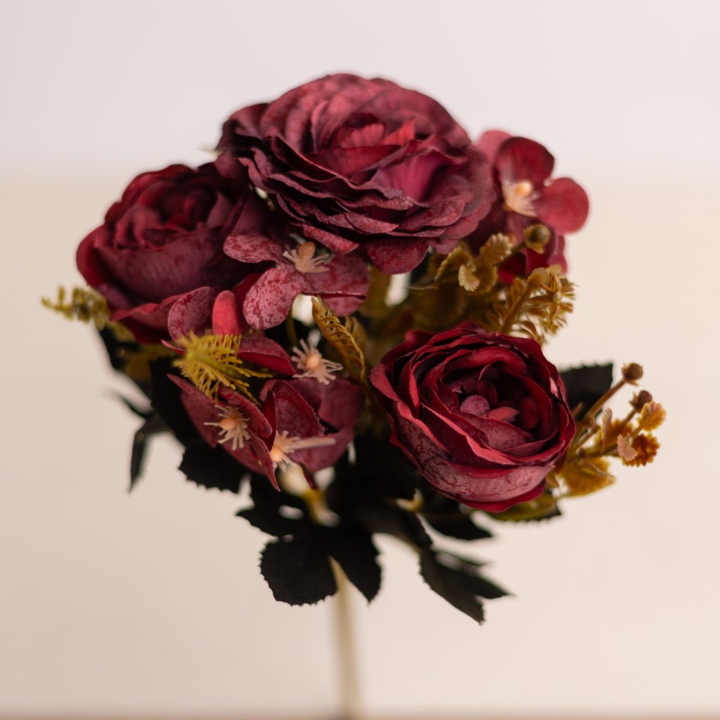 Kytička Ruža a Hortenzia BORDOVÁ 30cm