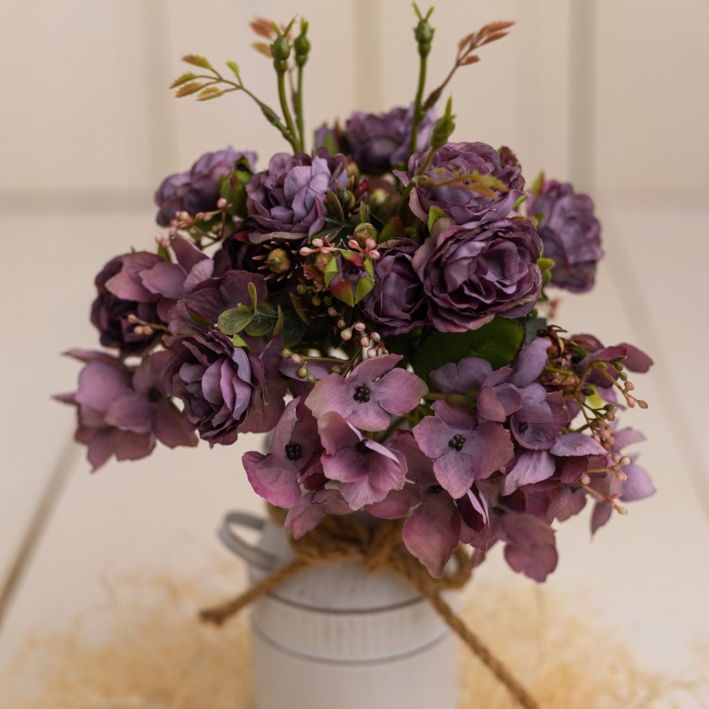 Kytička Ruža a Hortenzia FIALOVÁ 30cm. Kvalitné prevedenie, jemne sušený vzhľad.