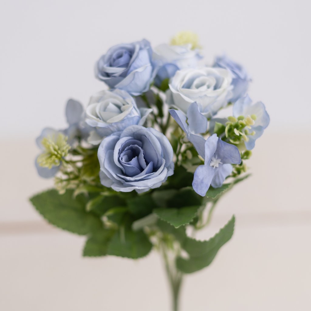 Kytička ružičky s hortenziou MODRÁ