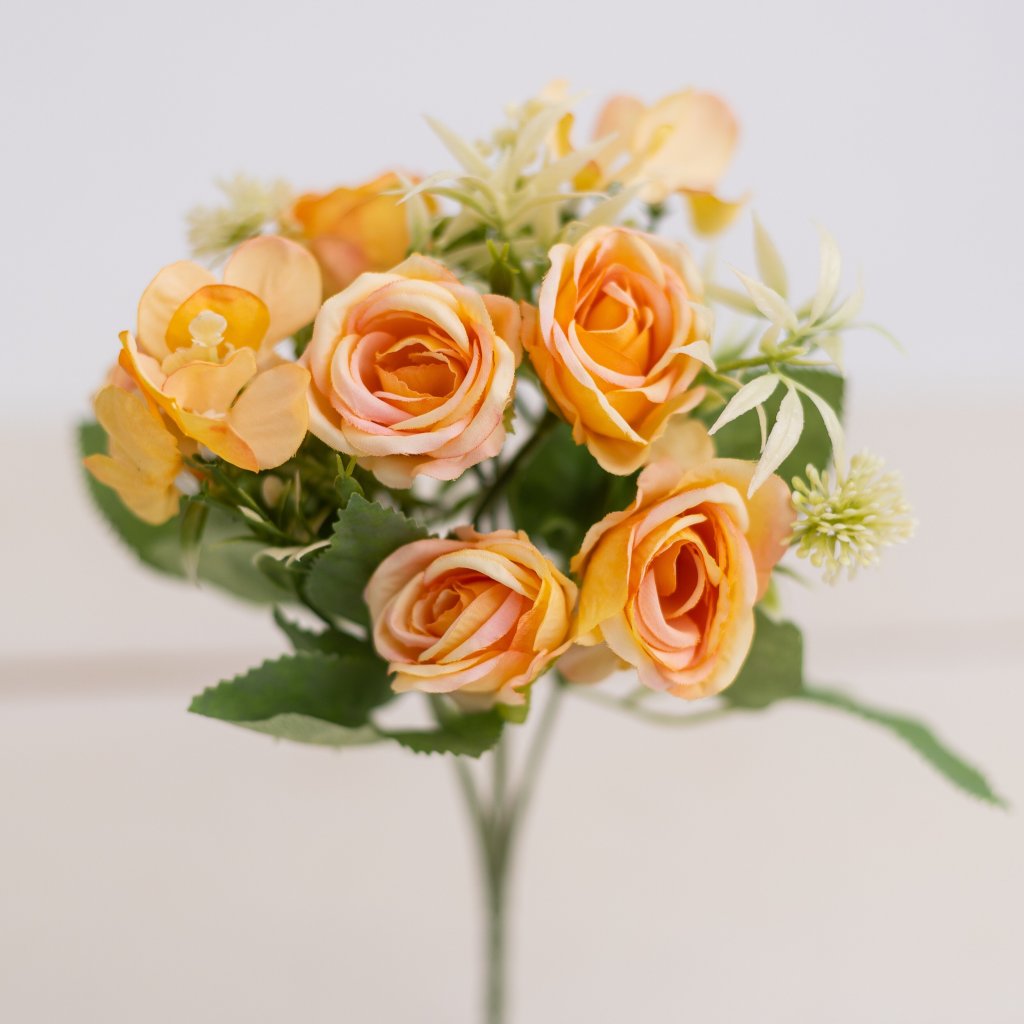 Kytička ružičky s hortenziou ORANŽOVÁ 30cm
