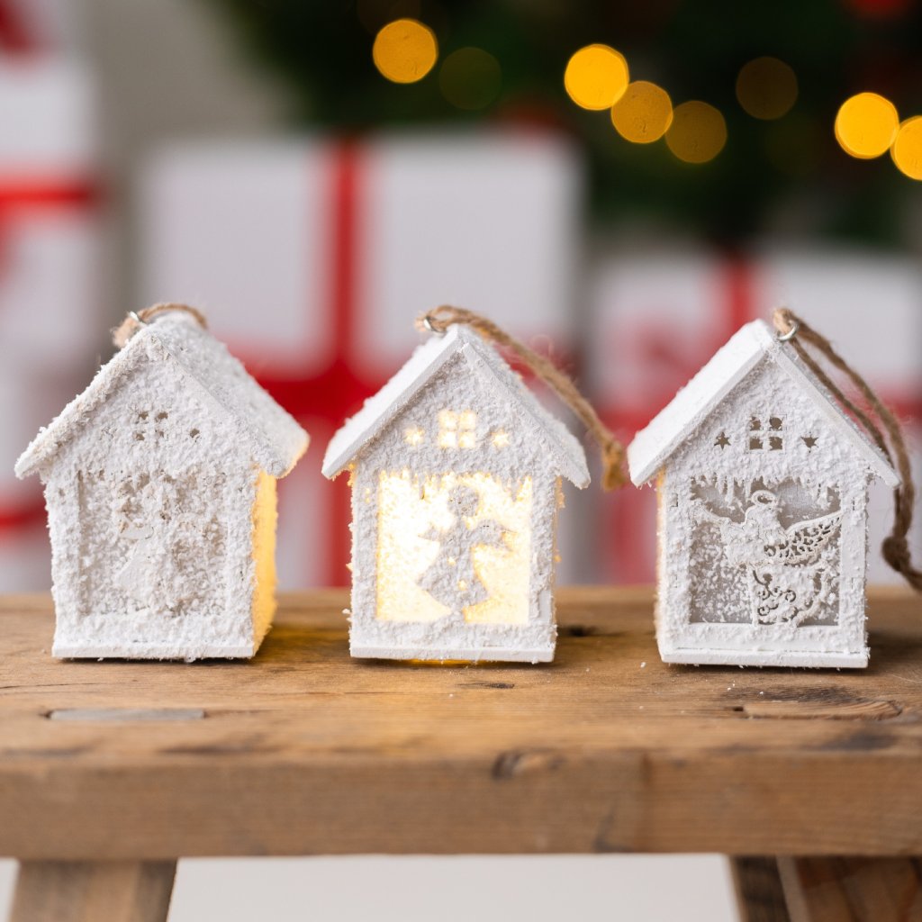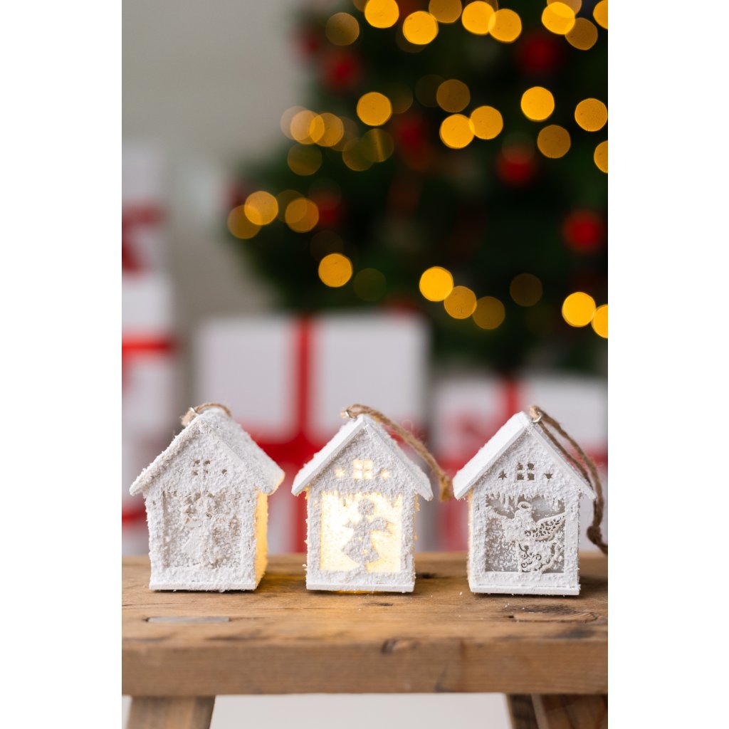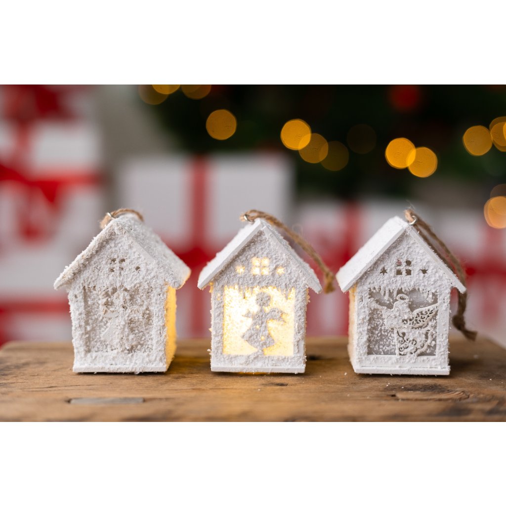 LED domček drevený zasnežený 7cm
