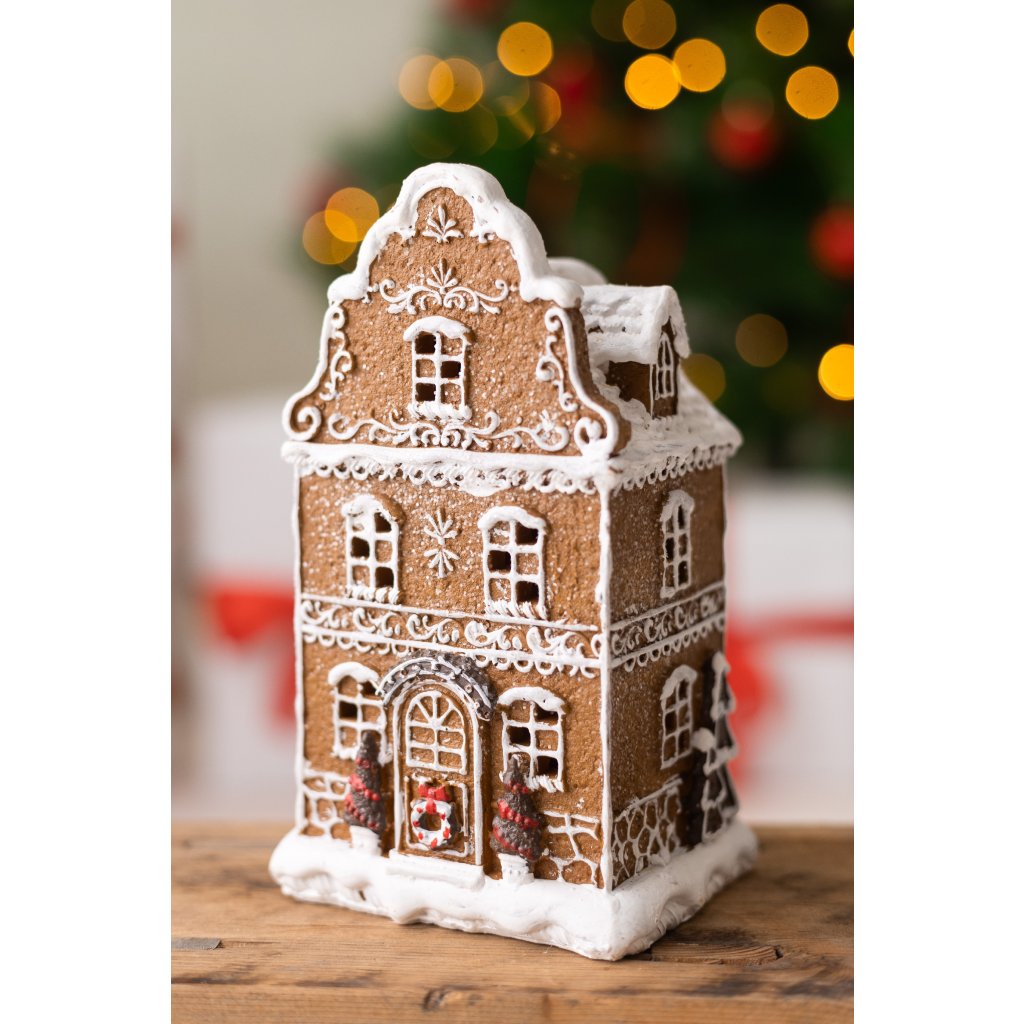 Perníkový dom je krásna dekorácia na Vianoce, ktorá dodá vášmu domovu jedinečnú atmosféru. Je vyrobený z polyresínu a má detailne spracované okná a dvere. LED osvetlenie vytvára príjemnú atmosféru a je ideálny na ozdobenie vianočného stola alebo poličky.