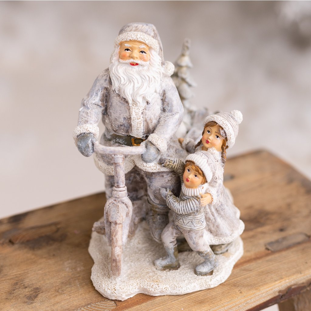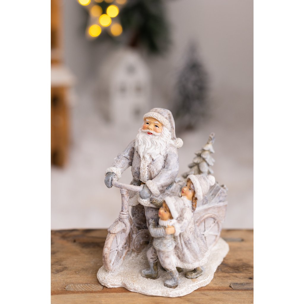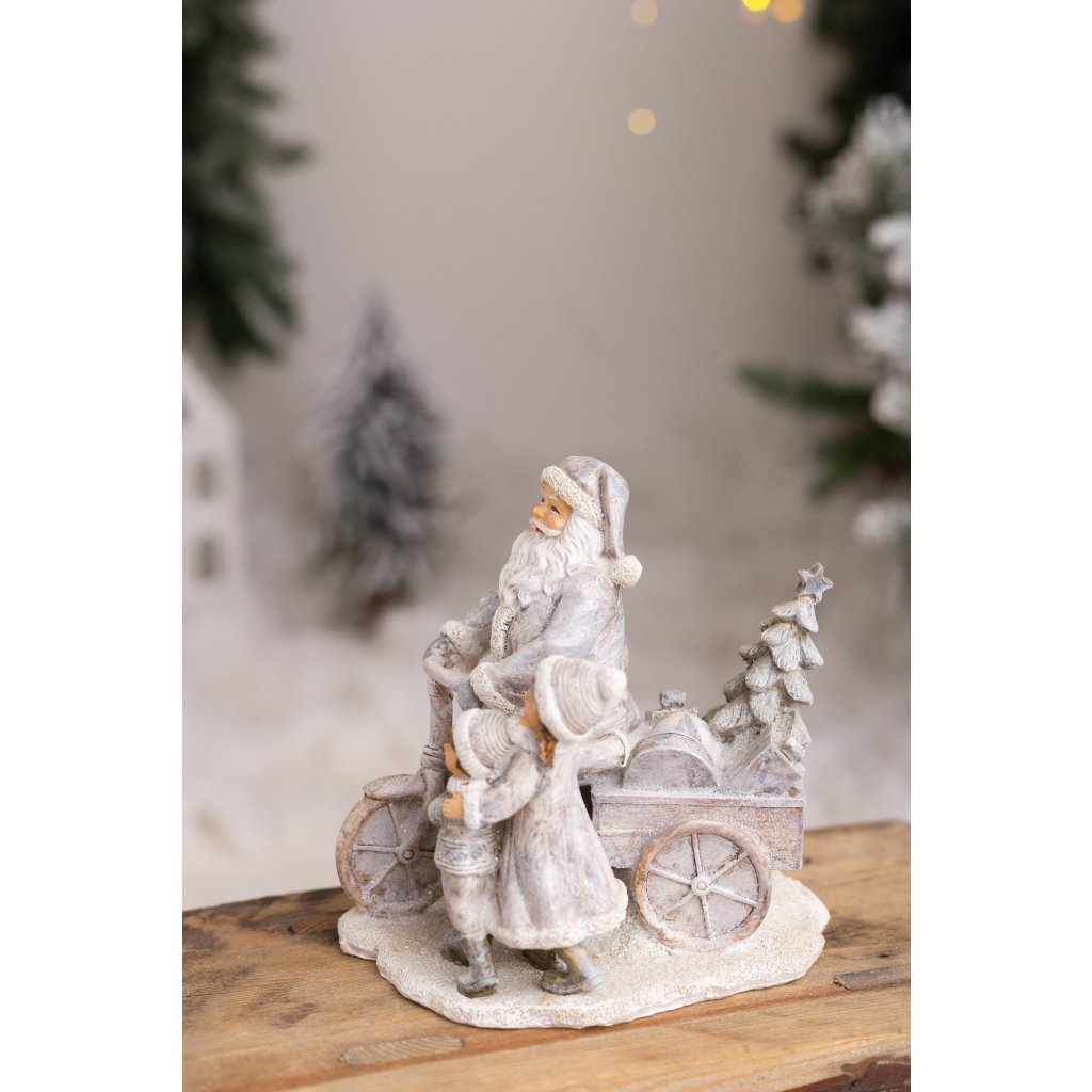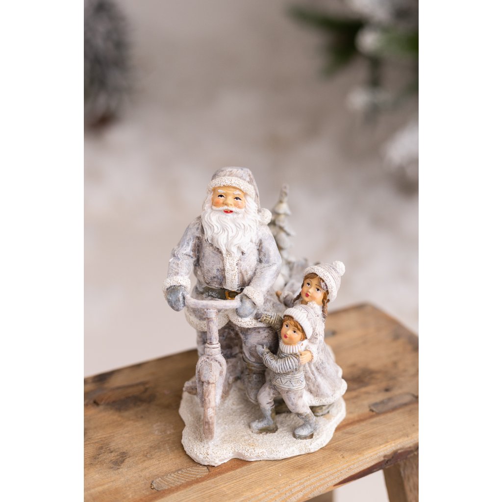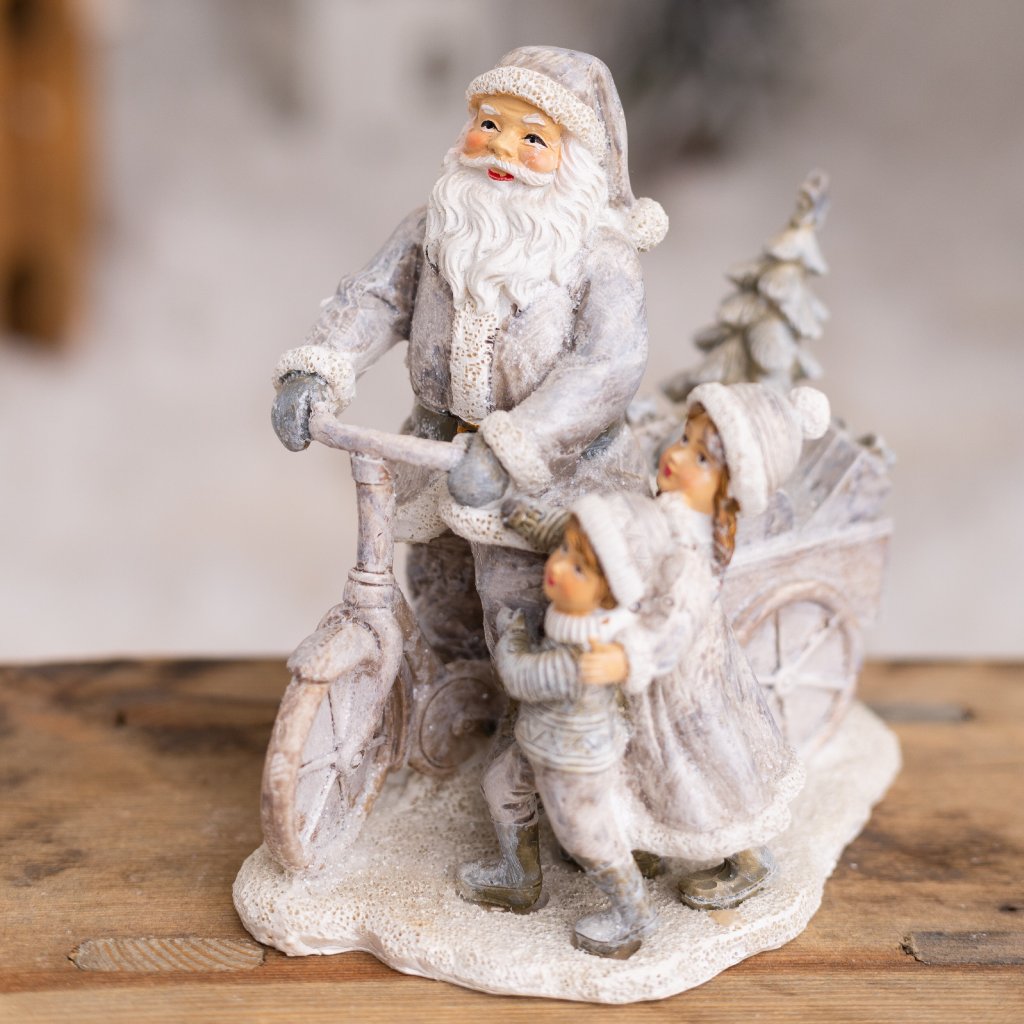 Mikuláš na bicykli s detičkami 15x14cm. Farba šampanská. Polyresin.