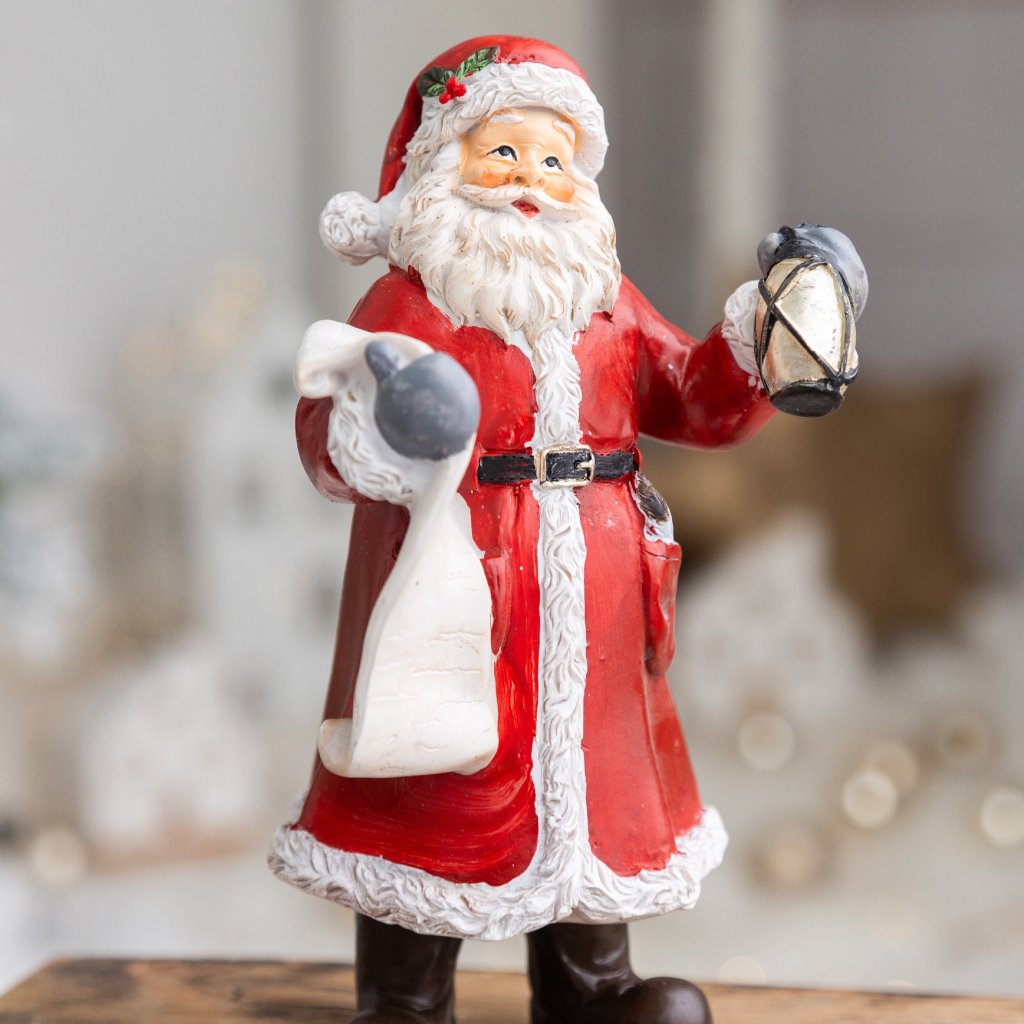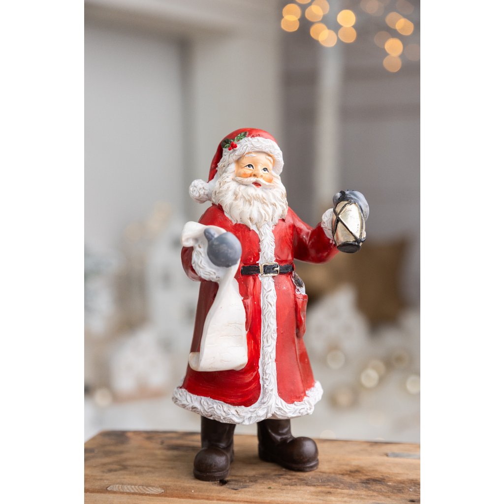 Vianočná dekorácia v podobe Mikuláša, ktorý je oblečený v červenom plášti. Drží lampáš a má v ruke vrece. Ideálny na vianočné oslavy a dekoráciu vášho domova. Vyrobený z kvalitného polyetylénu, čo zaručuje jeho trvácnosť. Perfektný doplnok pre milovníkov Vianoc.