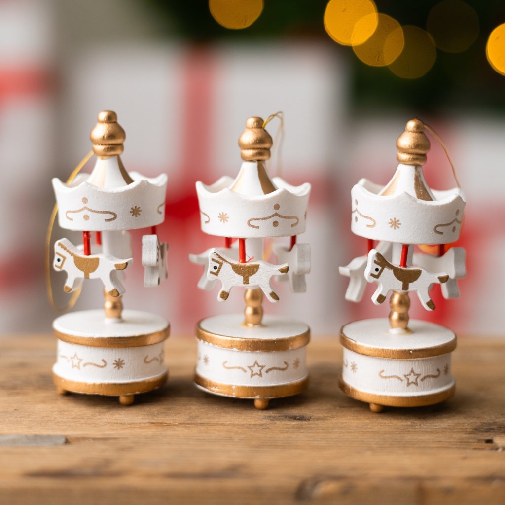 Ozdoba drevený kolotoč BIELY 8cm 3ks