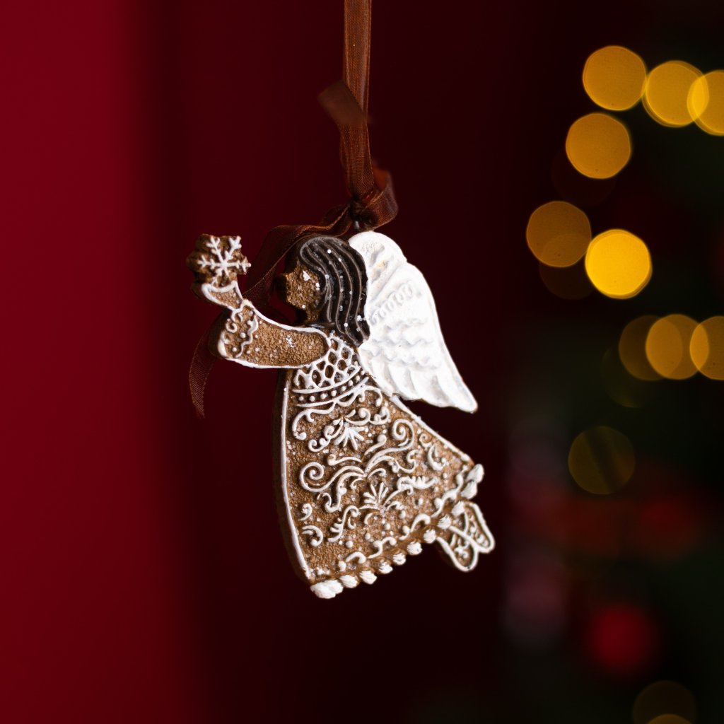 Záves anjel je vyrobený z kvalitného polyresu a má vzhľad perníka. Je ideálny na vianočnú výzdobu a dodá vášmu domovu jedinečnú atmosféru. Anjel je zdobený detailmi, ktoré mu dodávajú na kráse. S rozmermi 5,5x1,3x10 cm sa skvele hodí na zavesenie na vianočný stromček alebo iné dekorácie.