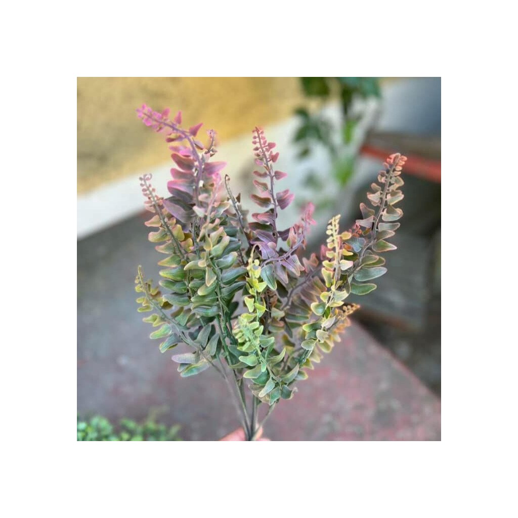 Umelá papraď s väčšími, jemne tvarovanými lístočkami pôsobí prirodzene a elegantne. Farebná kombinácia zelených tónov s jemným nádychom do ružova dodáva rastline hĺbku a realistický vzhľad. Vďaka výške 38 cm je ideálna ako výplň do smútočných aranžmánov, vencov a ikebán, rovnako aj do celoročných dekorácií a interiérových aranžmánov. Papraď je nenáročná na údržbu, stále pekná a vhodná na kombinovanie s kvetmi aj inou zeleňou.