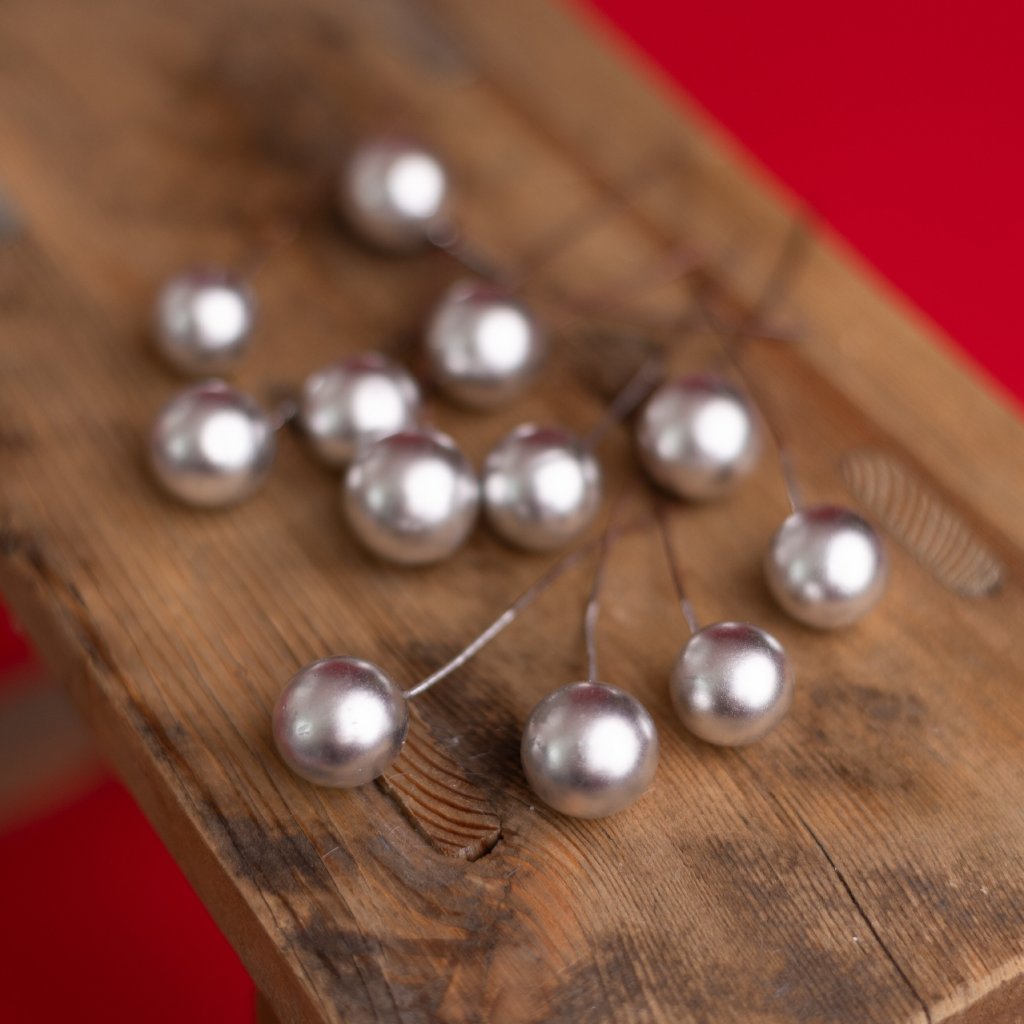 Perleťové guličky STRIEBORNÉ s priemerom 2cm a dĺžkou 7,5cm. Balenie 25ks.