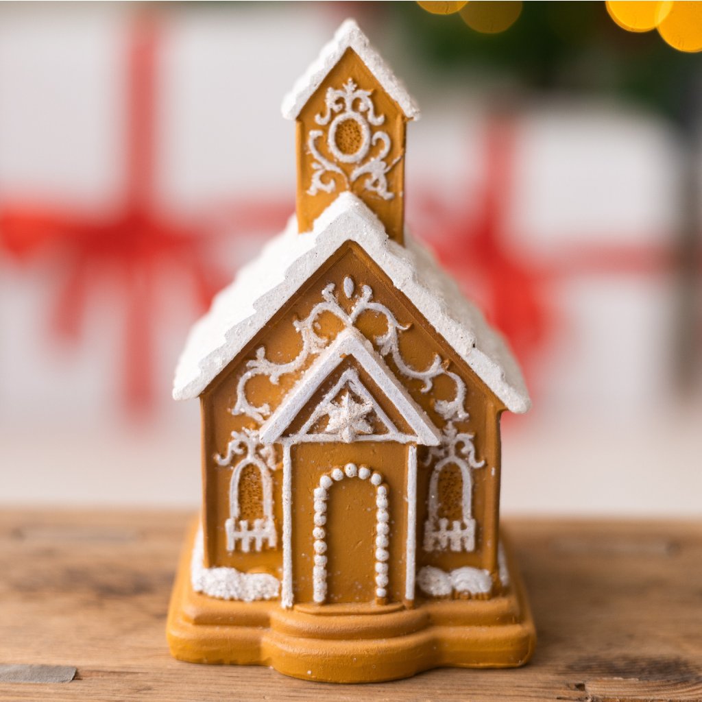 Svietiaci Perníkový domček 14x8cm. Krásne maľovaný. Polyresin.