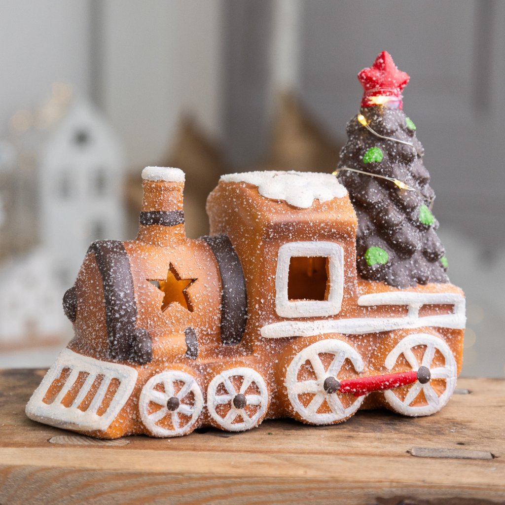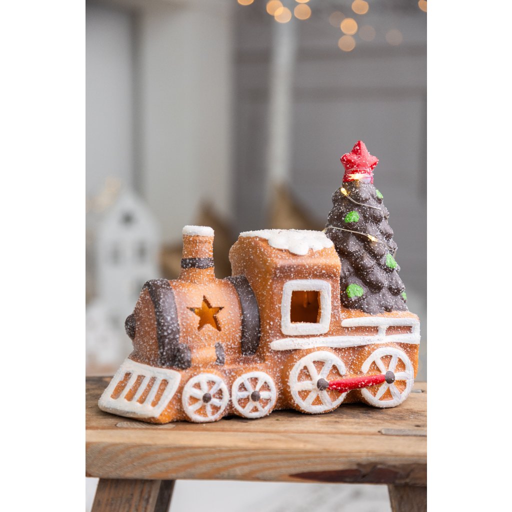 Perníkový vláčik 19cm s glitrom. Polyresin.