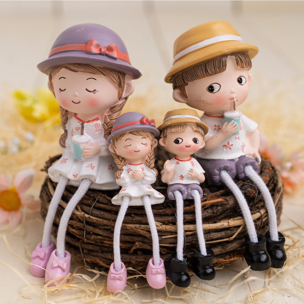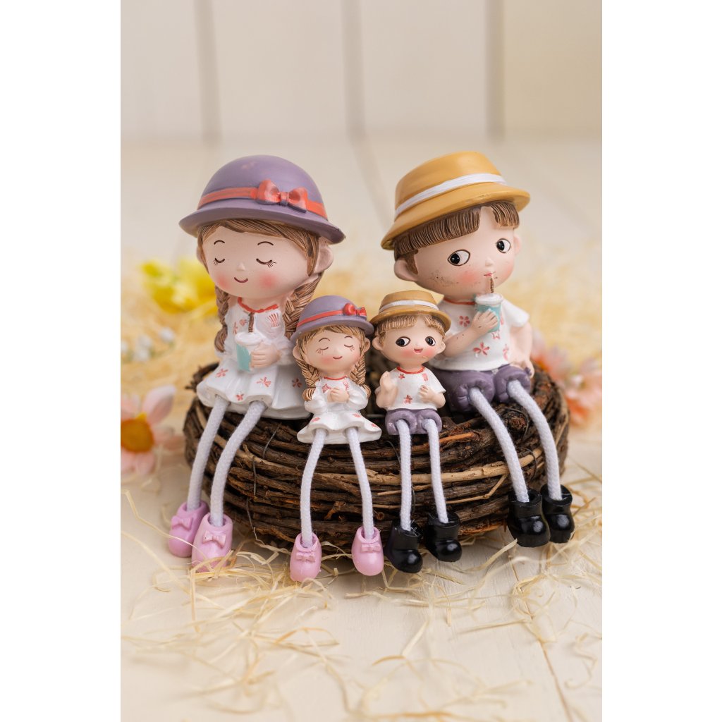 Milá dekoratívna rodinka zo 4 figúrok je vyrobená z kvalitného polyresinu a zaujme veselým dizajnom v letných klobúčikoch s nápojom. Figúrky majú jemné detaily a pohyblivé nožičky, vďaka ktorým pôsobia hravo a živo. Súprava obsahuje dve väčšie postavičky s výškou 16 cm a dve menšie s výškou 11 cm, čo spolu vytvára harmonický rodinný celok. Ideálna dekorácia do venčekov, aranžmánov, na poličku, parapet či komodu, ktorá vnesie do interiéru príjemnú, rodinnú atmosféru a úsmev na tvári.