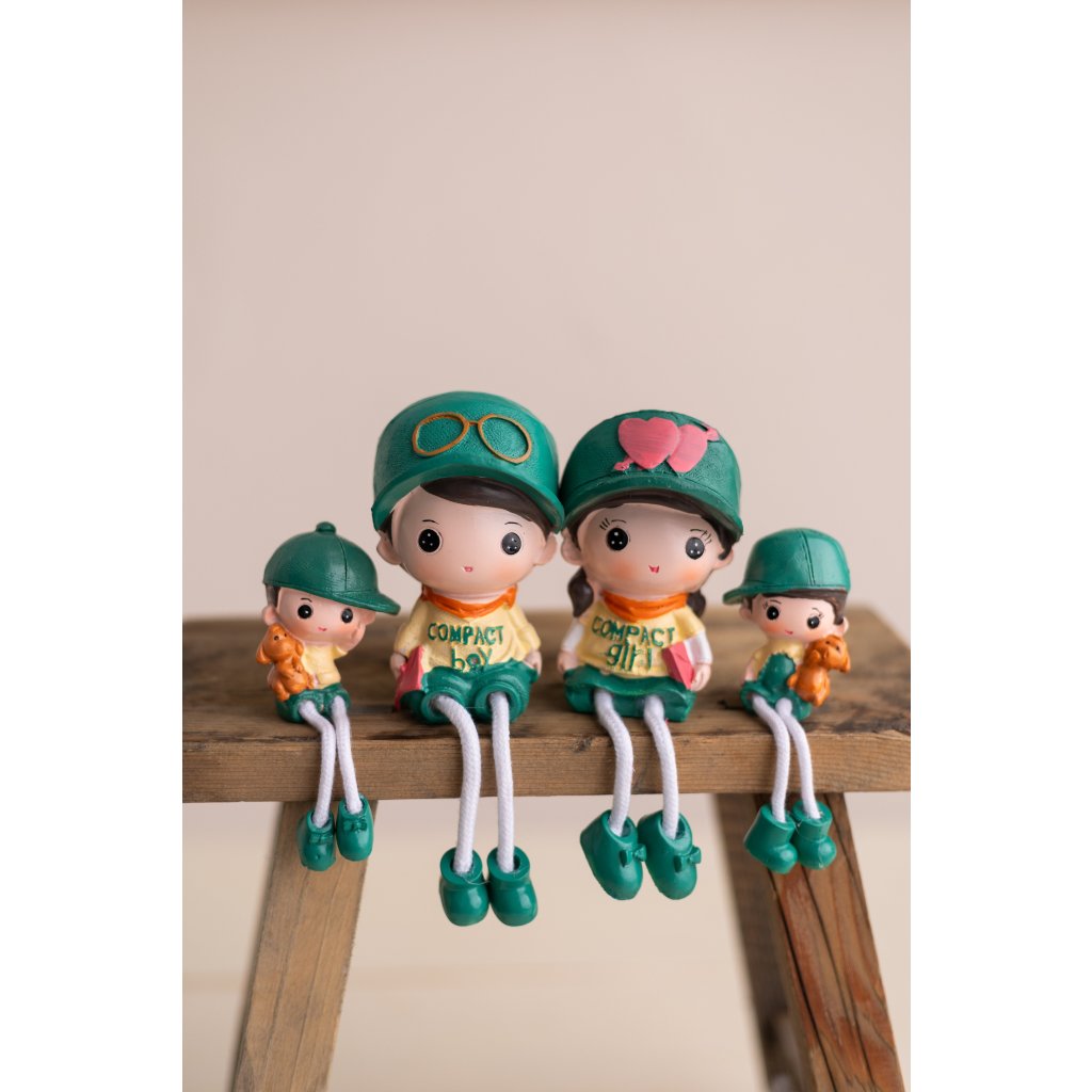 Milá dekoratívna rodinka zo 4 figúrok je vyrobená z kvalitného polyresinu a zaujme veselým dizajnom v zelených šiltovkách. Figúrky majú jemné detaily a pohyblivé nožičky, vďaka ktorým pôsobia hravo a živo. Súprava obsahuje dve väčšie postavičky s výškou 16 cm a dve menšie s výškou 11 cm, čo spolu vytvára harmonický rodinný celok. Ideálna dekorácia do venčekov, aranžmánov, na poličku, parapet či komodu, ktorá vnesie do interiéru príjemnú, rodinnú atmosféru a úsmev na tvári.