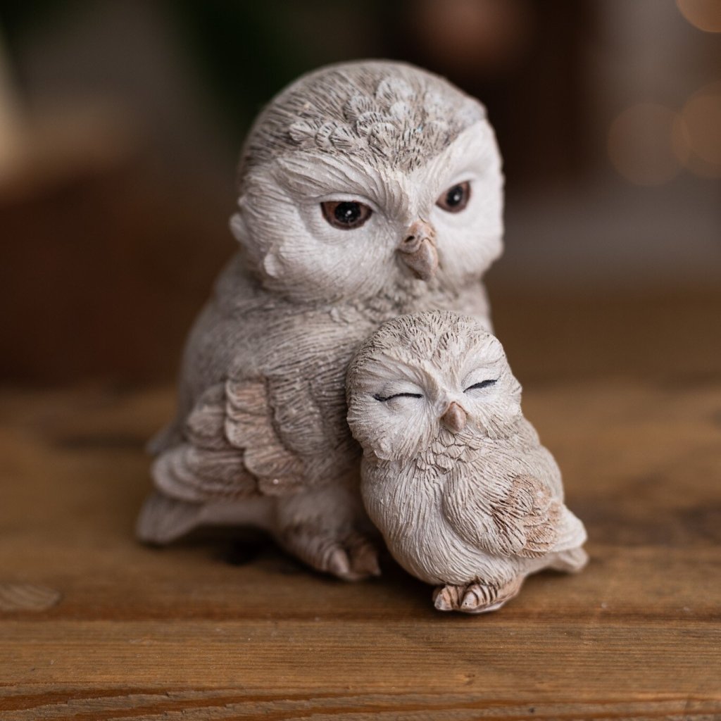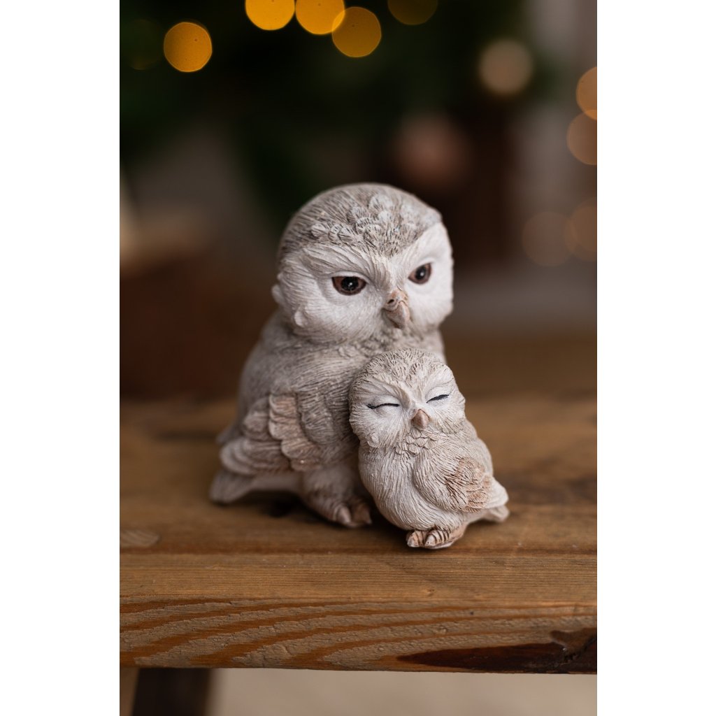 Krásna postavička sovička s mláďatkom 8,5 x 8 x 6 cm. Jemný gliter. Polyresin.