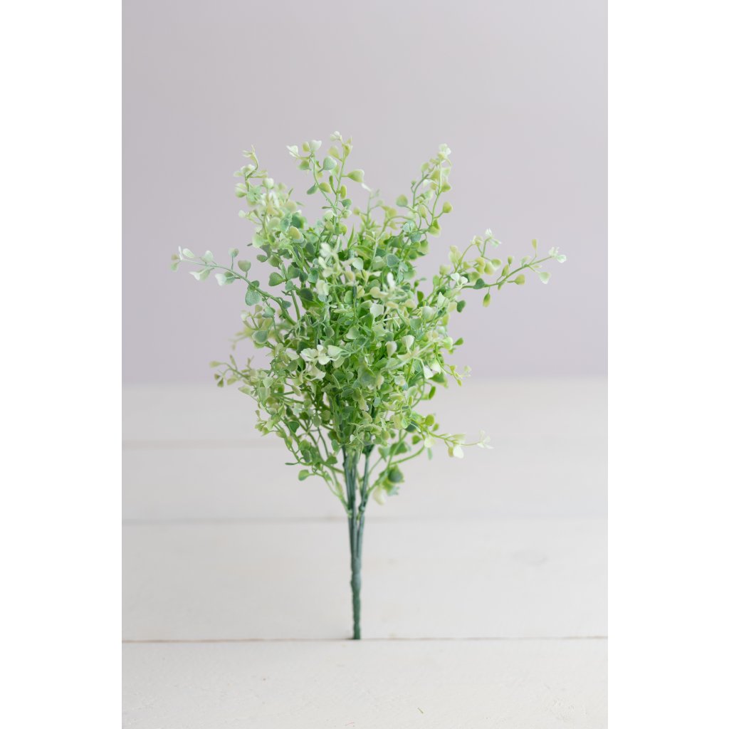 Krásna dekoratívna kytička s jemnými srdiečkovými lístočkami pôsobí ľahko, sviežo a prirodzene. Husté vetvičky s drobnými lístkami v rôznych odtieňoch zelenej dodávajú aranžmánom vzdušnosť a jemnú štruktúru. Vďaka výške 40 cm je ideálna do celoročných dekorácií, vencov, kytíc, ikebán aj moderných interiérových aranžmánov. Skvelo sa kombinuje s kvetmi aj inou zeleňou a slúži ako univerzálna prízdoba, ktorá dodá dekoráciám prirodzený a harmonický vzhľad.