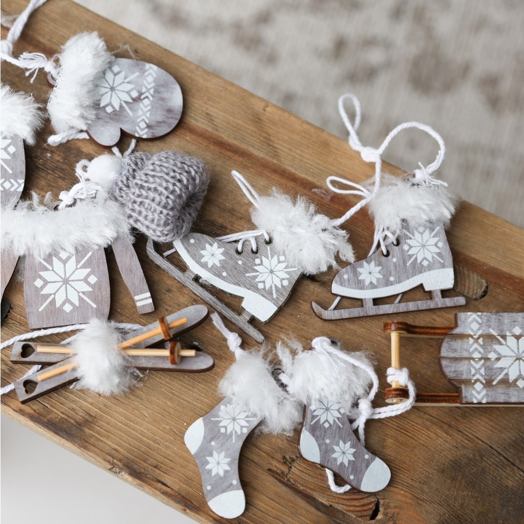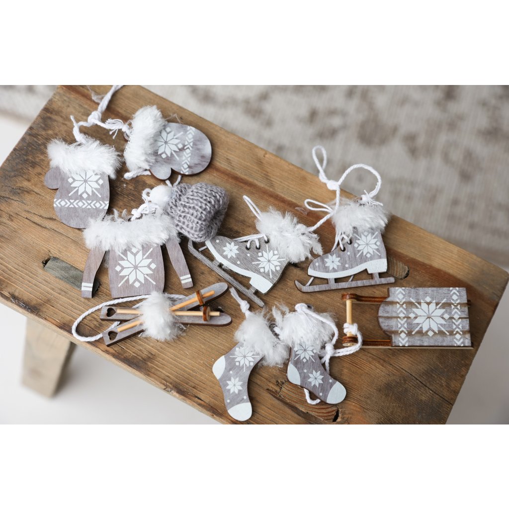 Súprava drevené ozdoby ŠEDÉ 6ks