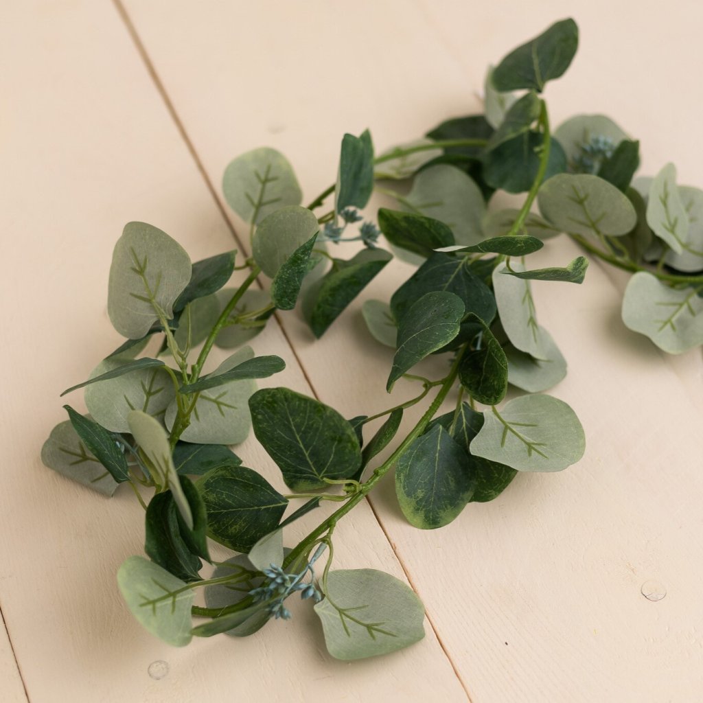 VÝPREDAJ! Ťahačka eukalyptus látkové prevedenie 12cm. Vhodná na rozobratie, alebo omotanie okolo venca ako podklad pod kvietky.