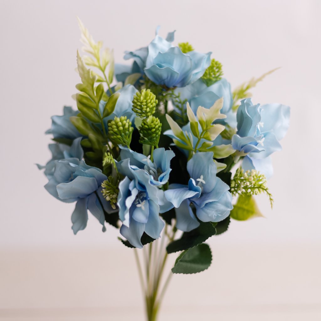 Hustá, perfektná doplnková kytička MODRÁ 43cm s prízdobami. Celoročné aranžovanie.