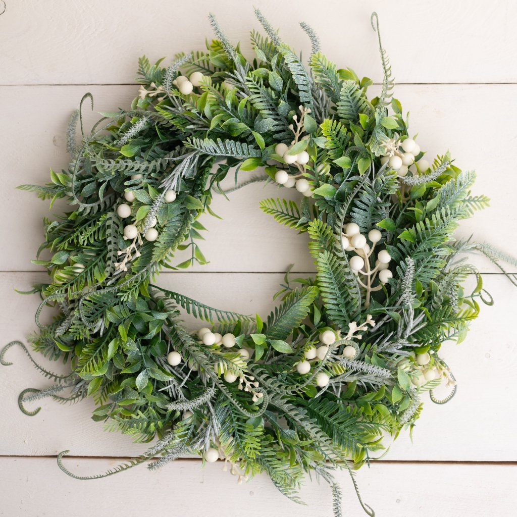 Veniec MIX papraď a biele bobuľky 45cm