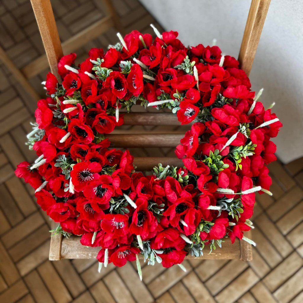 Ručne viazaný veniec VLČIE MAKY s priemerom 45cm. Kvalitný materiál a poctivé husté viazanie kvietkov a zelene na slamený veniec. Vyhotovenie do 3 dní.