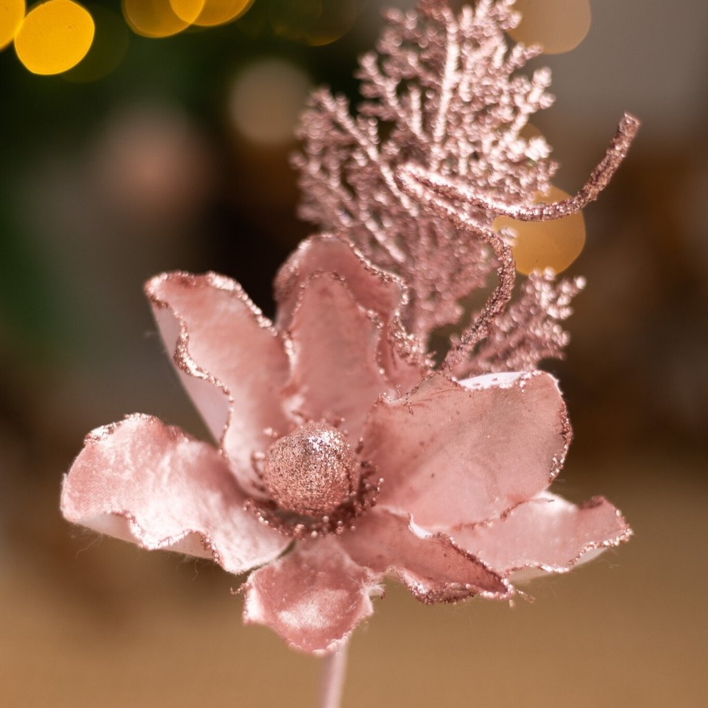 Umelá magnólia v elegantnej ružovej farbe je ideálnym doplnkom pre vaše vianočné dekorácie. Jej jemné detaily a lesklé akcenty dodajú každému priestoru nádych luxusu. Perfektne sa hodí do kytíc, aranžmánov alebo ako samostatná dekorácia. Vytvorte si jedinečnú atmosféru s touto krásnou umelou kvetinou.