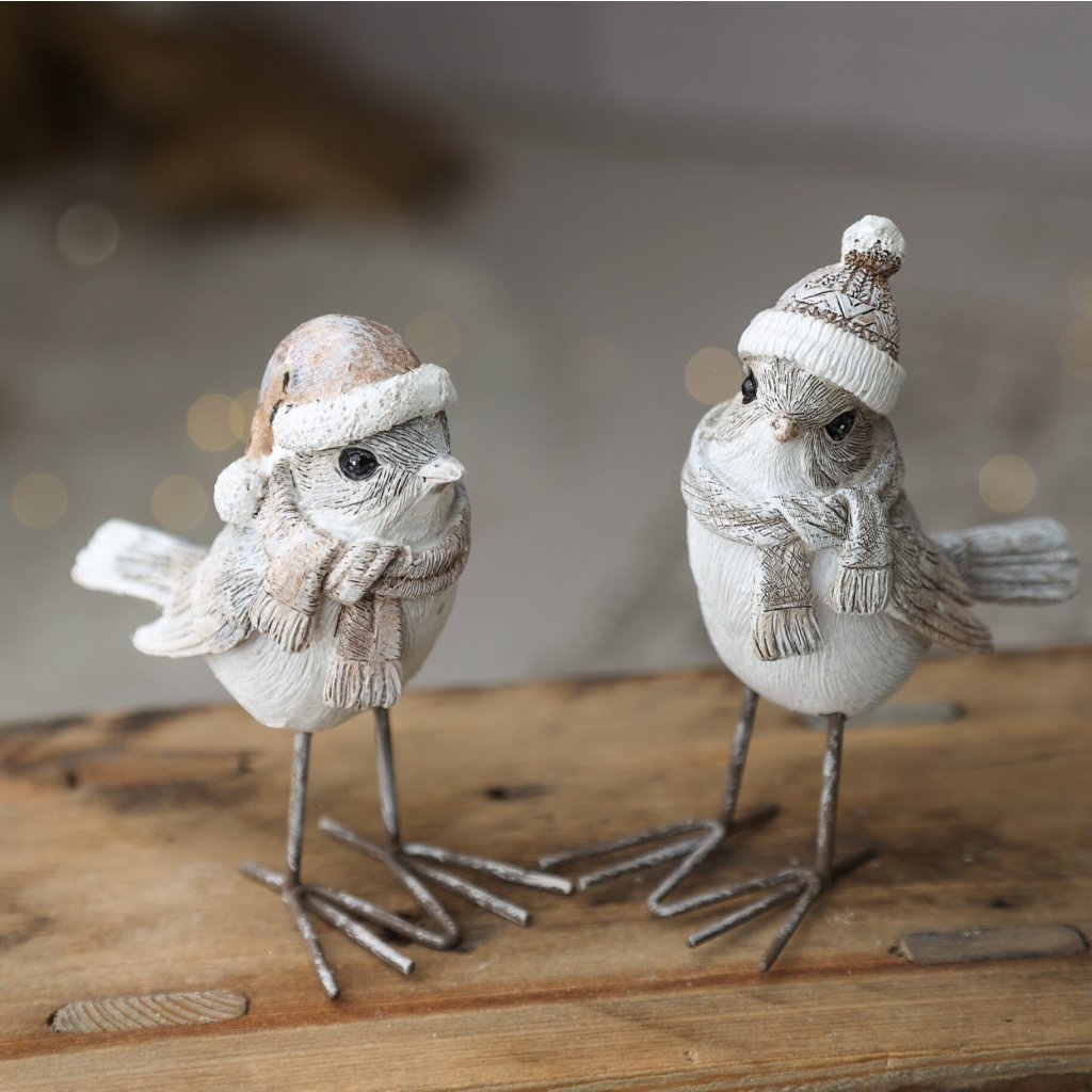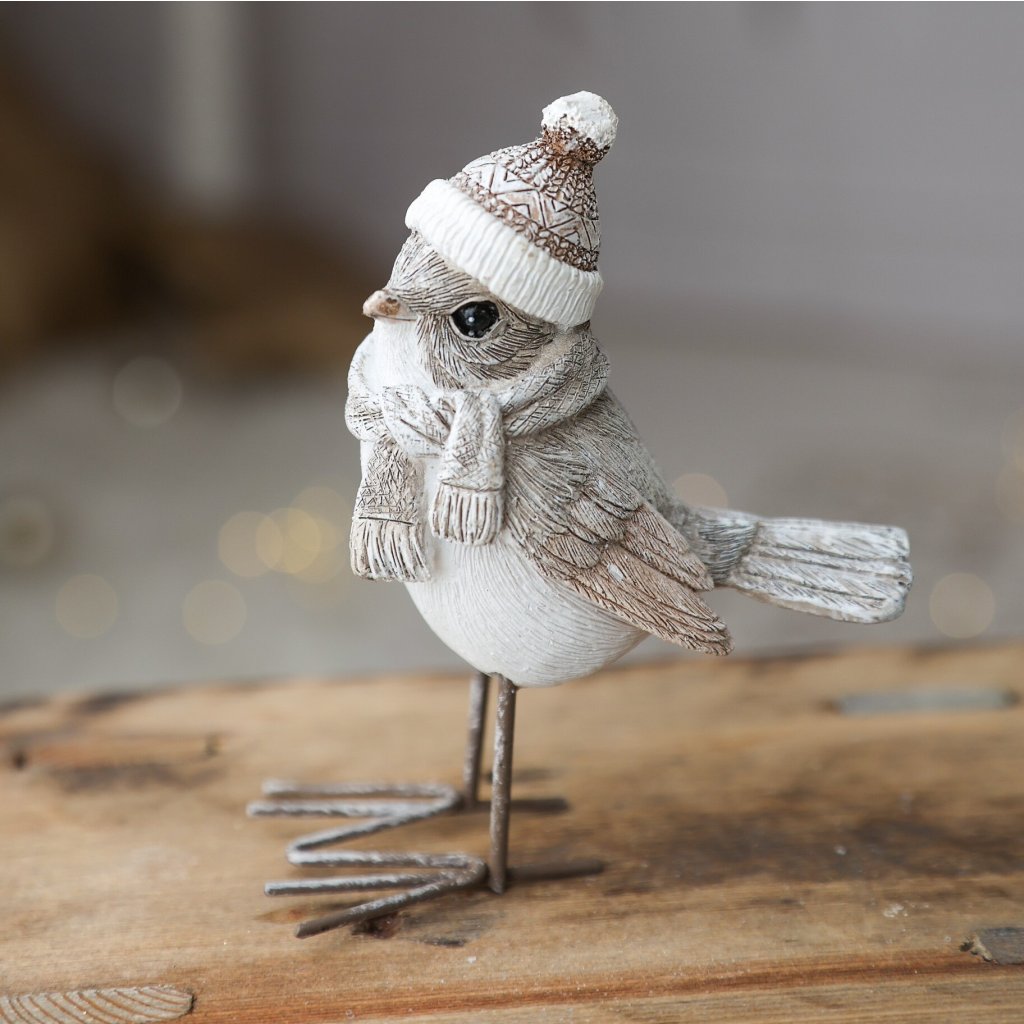 Vtáčik s čiapkou 12cm. Farba šampanská. Polyresin. Cena za 1ks