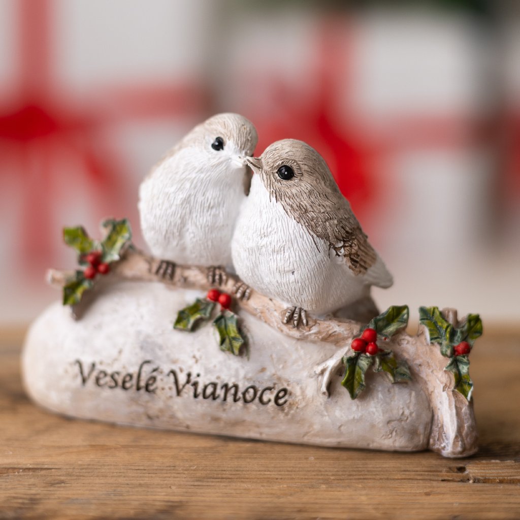 Sediace vtáčiky Veselé Vianoce 8x12cm. Polyresin.
