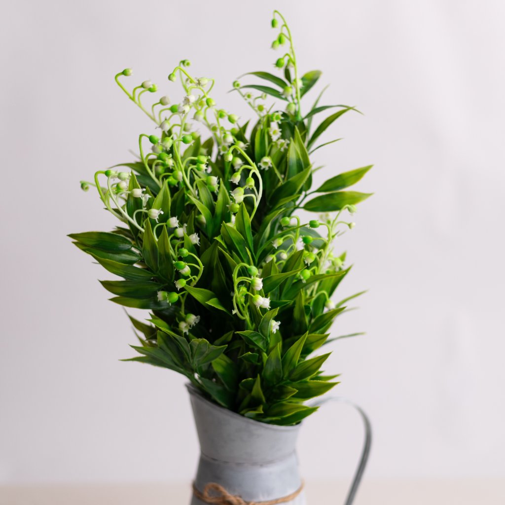 Vysoká kytica konvaliniek je elegantným a výrazným dekoračným prvkom, ktorý pôsobí sviežo a prirodzene. Obsahuje až 18 bohatých stopiek s jemnými bielymi kvietkami a hustými zelenými listami, vďaka čomu poskytuje veľké množstvo materiálu na ďalšie aranžovanie. S výškou 52 cm je perfektná ako samostatná dekorácia do vysokej vázy, no rovnako vhodná aj na rozobranie a použitie v aranžmánoch, vencoch či sezónnych dekoráciách. Kytica nevyžaduje žiadnu starostlivosť a zachováva si svoj krásny vzhľad po dlhý čas, čo z nej robí praktickú a zároveň veľmi efektnú voľbu.