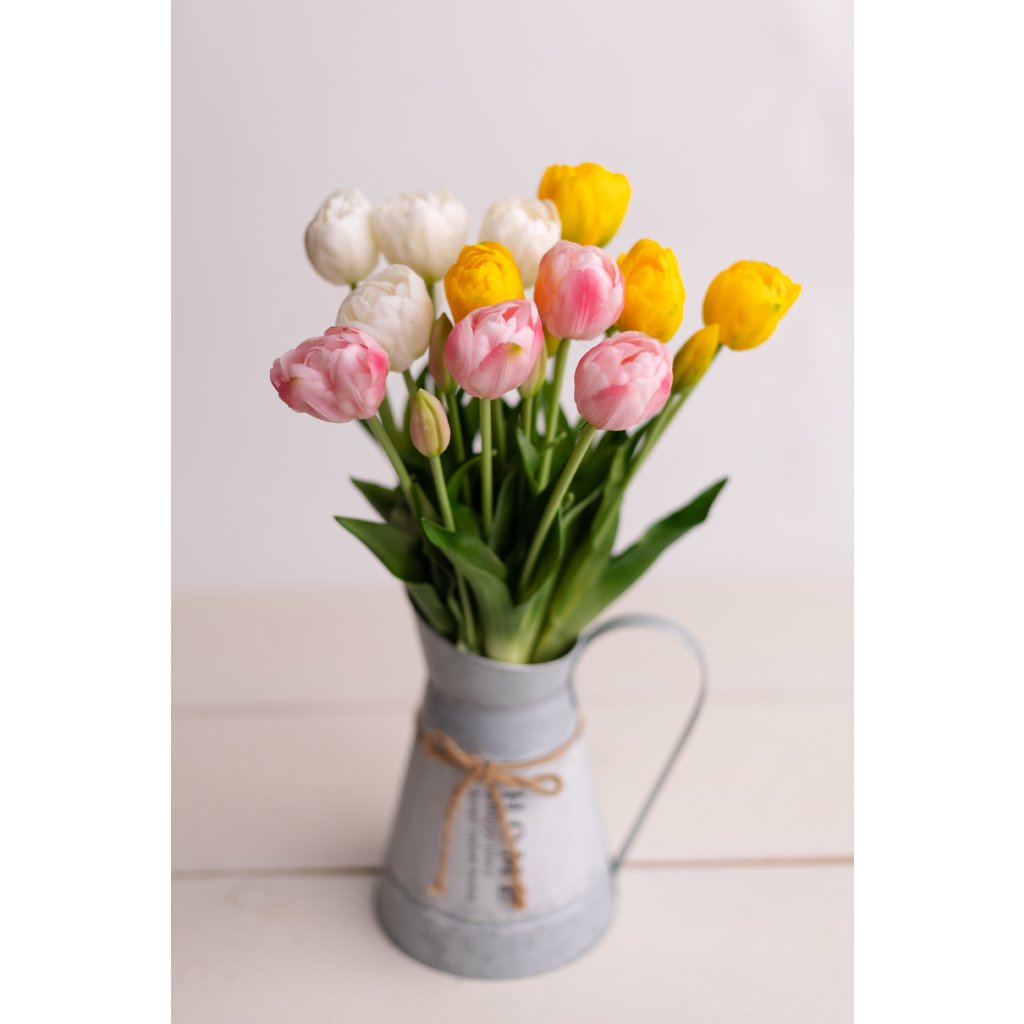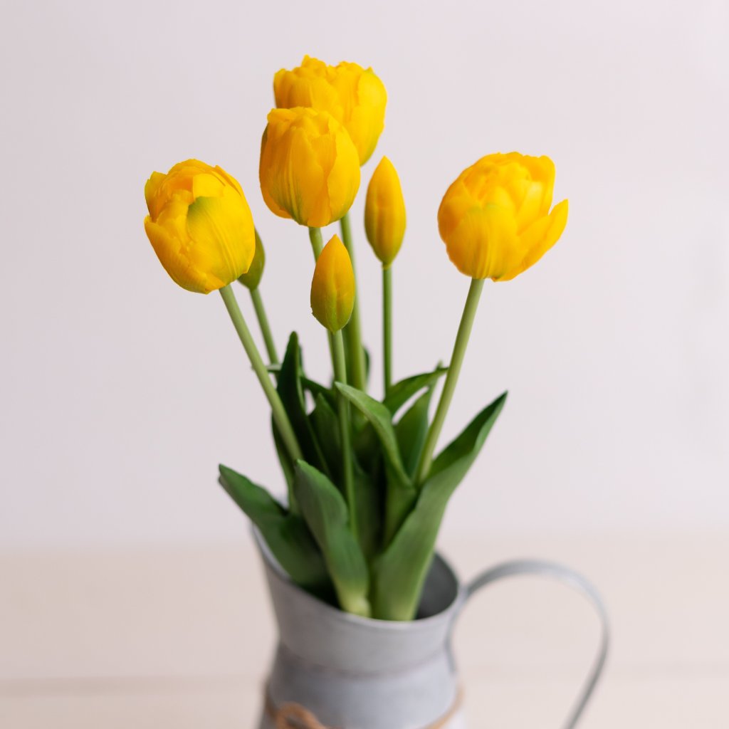 Luxusná gumová kytica tulipánov s výškou 45 cm je dokonalou imitáciou živých kvetov. Vďaka precíznemu spracovaniu, jemne otvoreným hlavičkám a prirodzeným farebným prechodom pôsobí mimoriadne realisticky – ako živá.