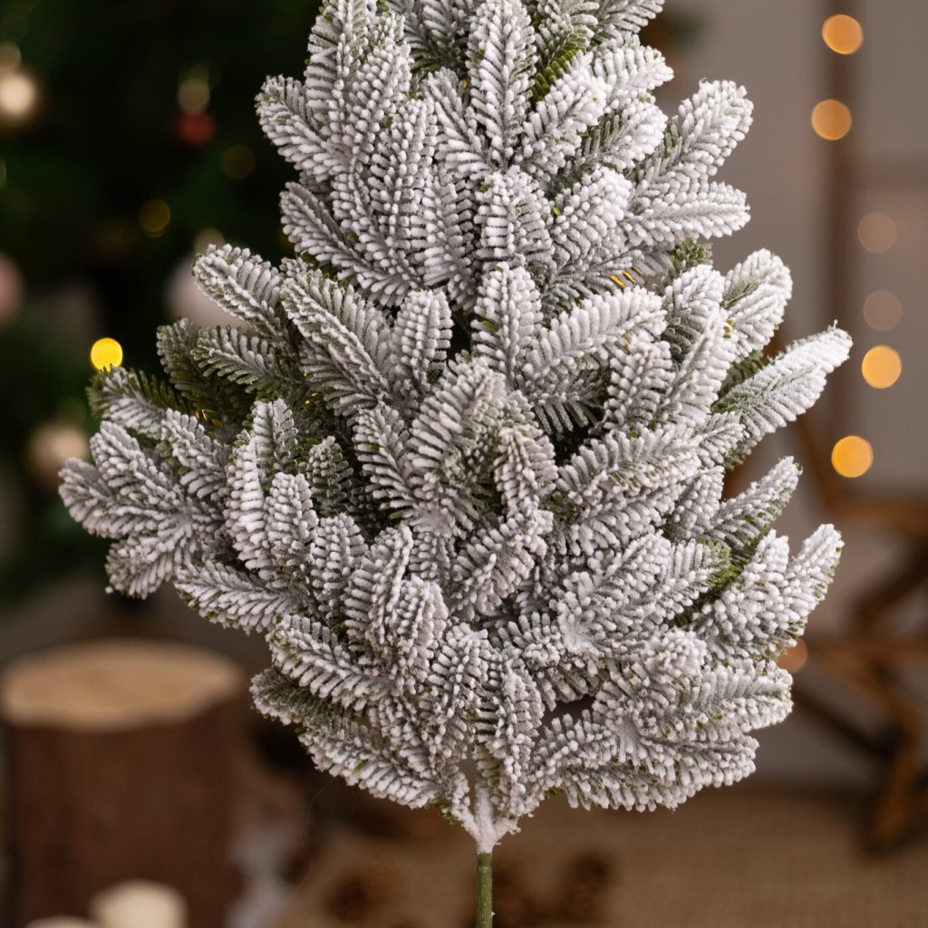 Zamrznutá ihličnatá halúzka pripomínajúca zasneženú zimnú krajinu je vhodná ako dekorácia do vázy, na aranžovanie do adventných vencov, vianočných dekorácií, aranžmánov a ikebán.