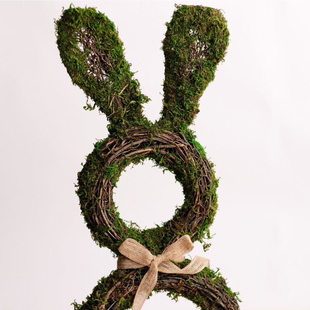Záves zajac prútie je ideálny doplnok na Veľkú noc. Je vyrobený z prírodného prútia a pokrytý machom, čo mu dodáva jedinečný vzhľad. Môžete ho zavesiť na dvere alebo stenu, čím vytvoríte príjemnú atmosféru. Rozmery sú 25x4,5x58 cm, čo z neho robí výrazný kúsok dekorácie.