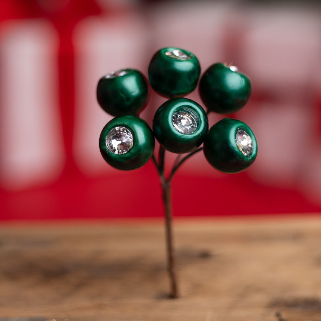 Zápich bobuľky s kamienkom ZELENÉ 15cm. Strieborná farba kamienku.