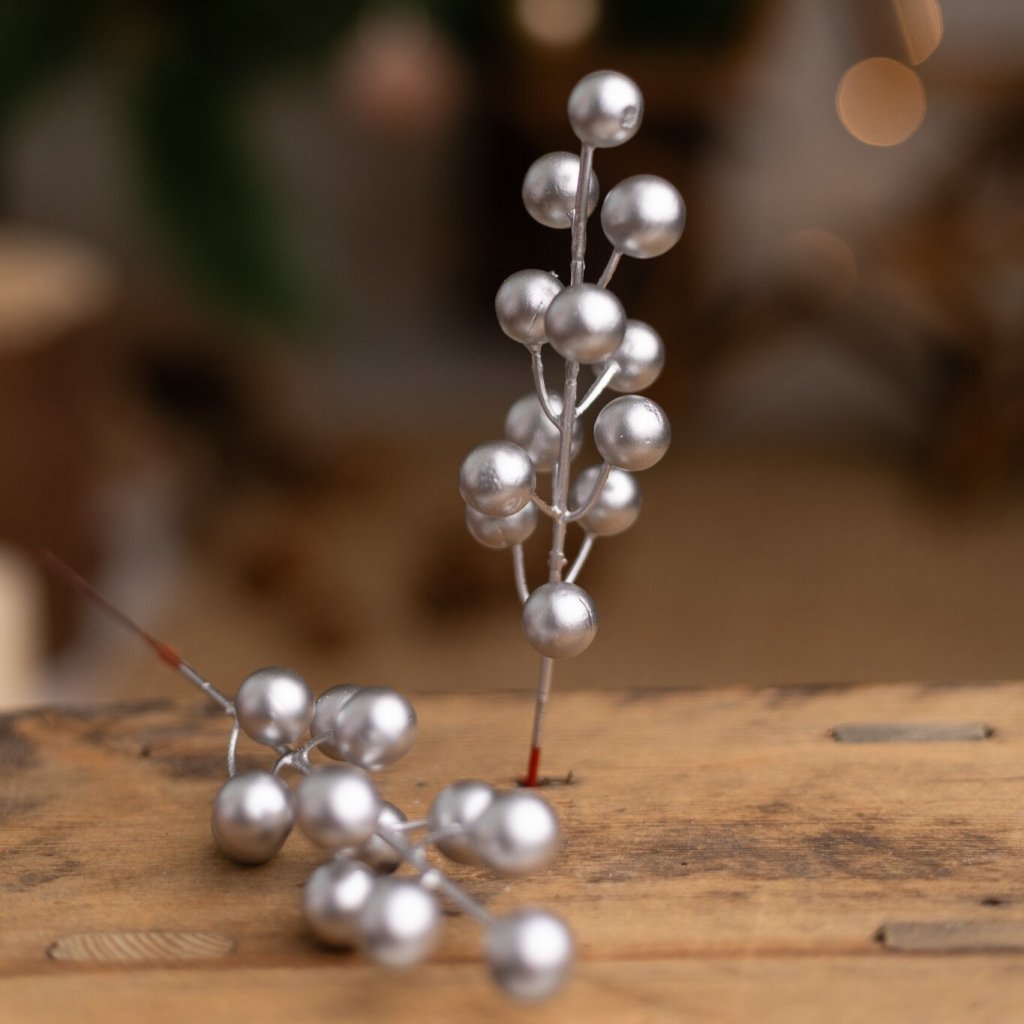 Zápich bobuľky STRIEBORNÉ 16cm 5ks