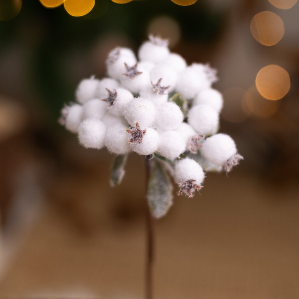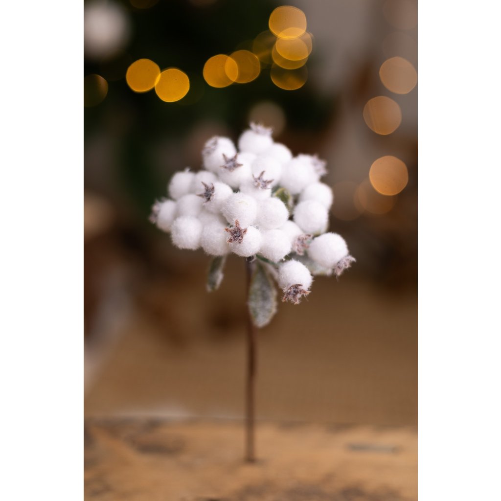 Zápich bobuľky zasnežené BIELE. Výška 22cm. Priemer 10-11cm. Jemné chĺpky.