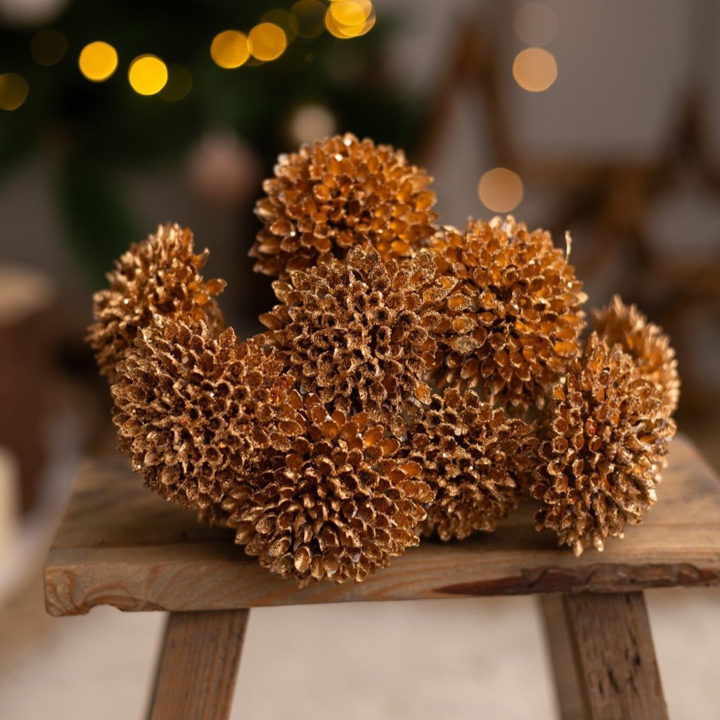 Trblietavý zlatý zápich cesnaku, kvalitné vypracovanie. Zápich je vhodný do vianočných vencov a aranžmánov.