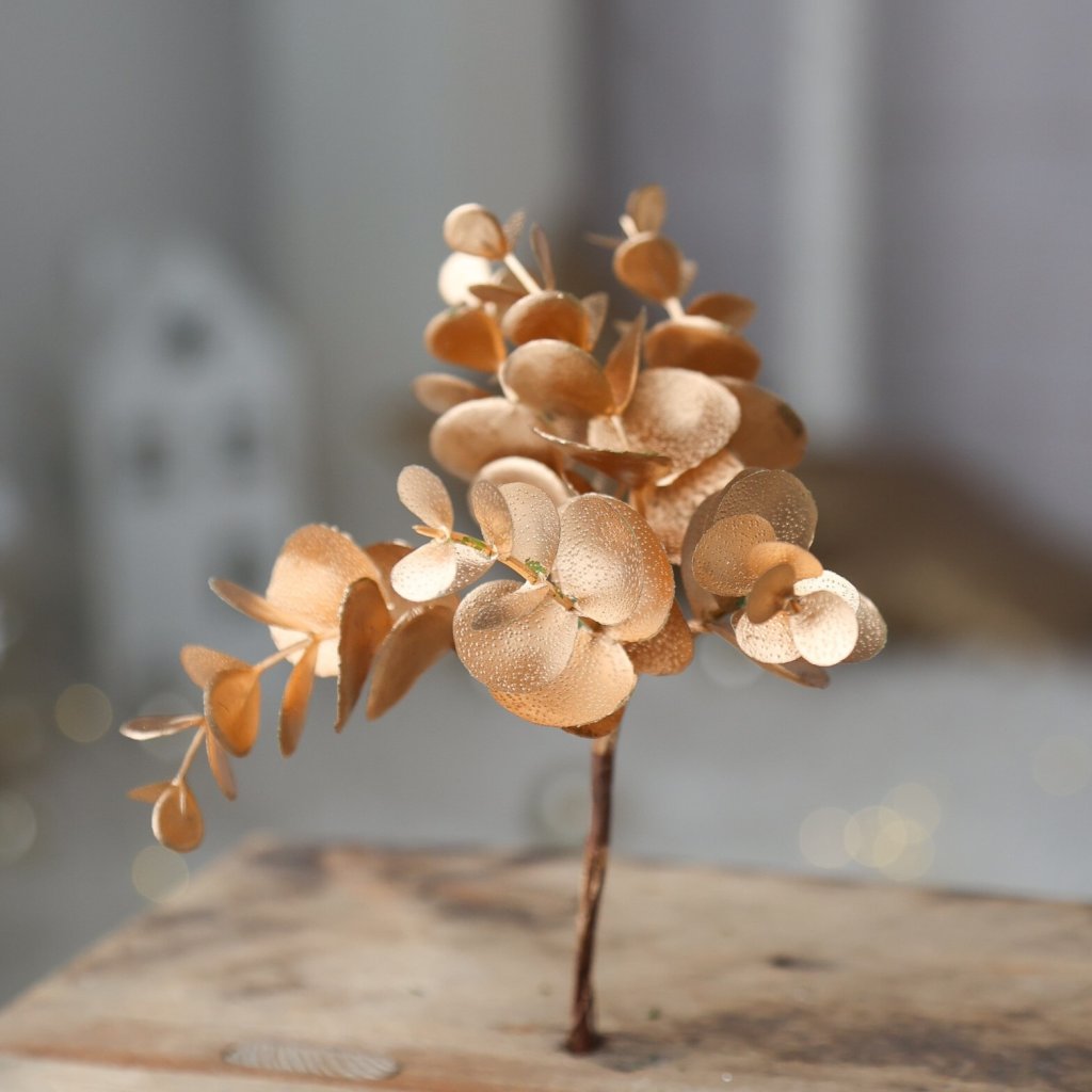 Zápich zlatý eukalyptus 5 výhonkov. Ideálne na dekorácie a aranžovanie.