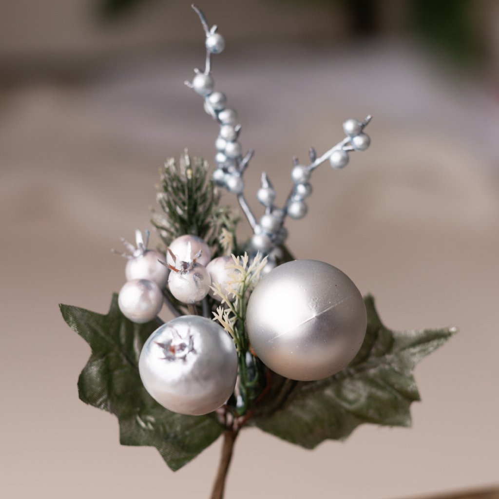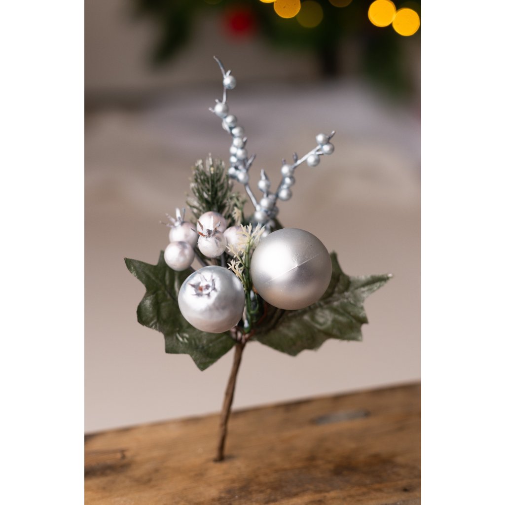 Zápich vianočná guľa s jabĺčkom MODRO STRIEBORNÁ. Výška 28cm.