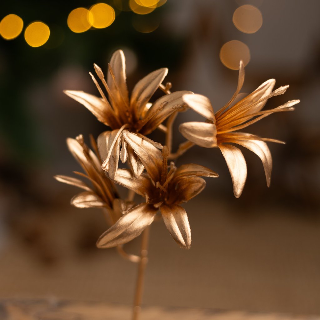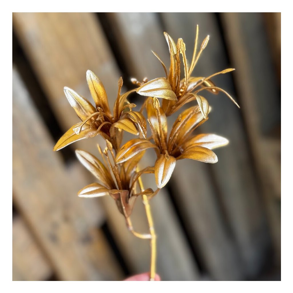 Zápich Ľalia ZLATÁ 37cm a 4 kvety. Priemer kvetu 6cm a výška kvetu 11cm.