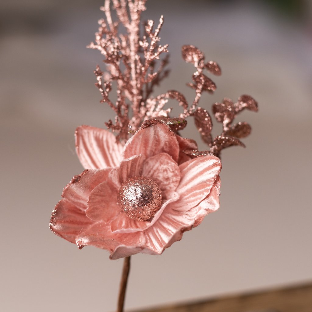 Zápich Magnólia s lístočkami STARO-RUŽOVÁ 23cm