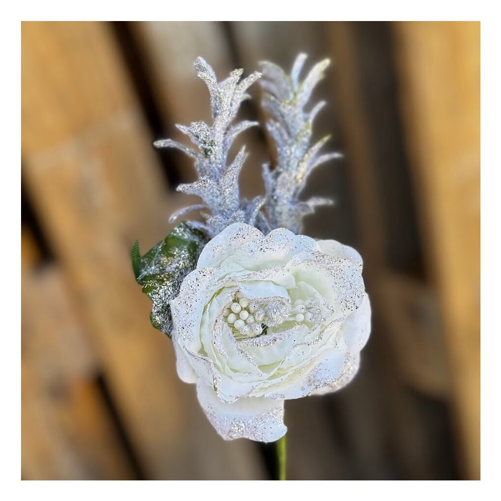 Zápich pivonka s trblietkami BIELA 23cm