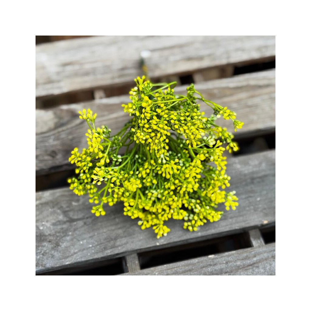 Zväzok zápichov so žltými bobuľkami. Balenie obsahuje 6 ks, dĺžka 24 cm. Vhodné do celoročných aranžmánov a dekorácií.