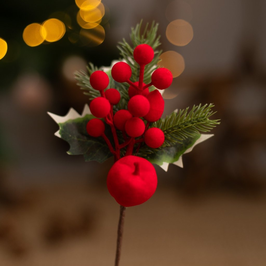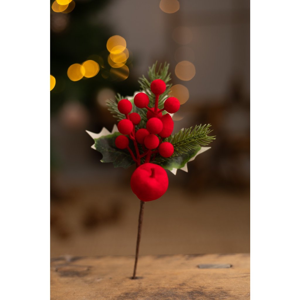 Zápich zamatové červené bobuľky a JABĹČKO 25cm. TOP KVALITA!
