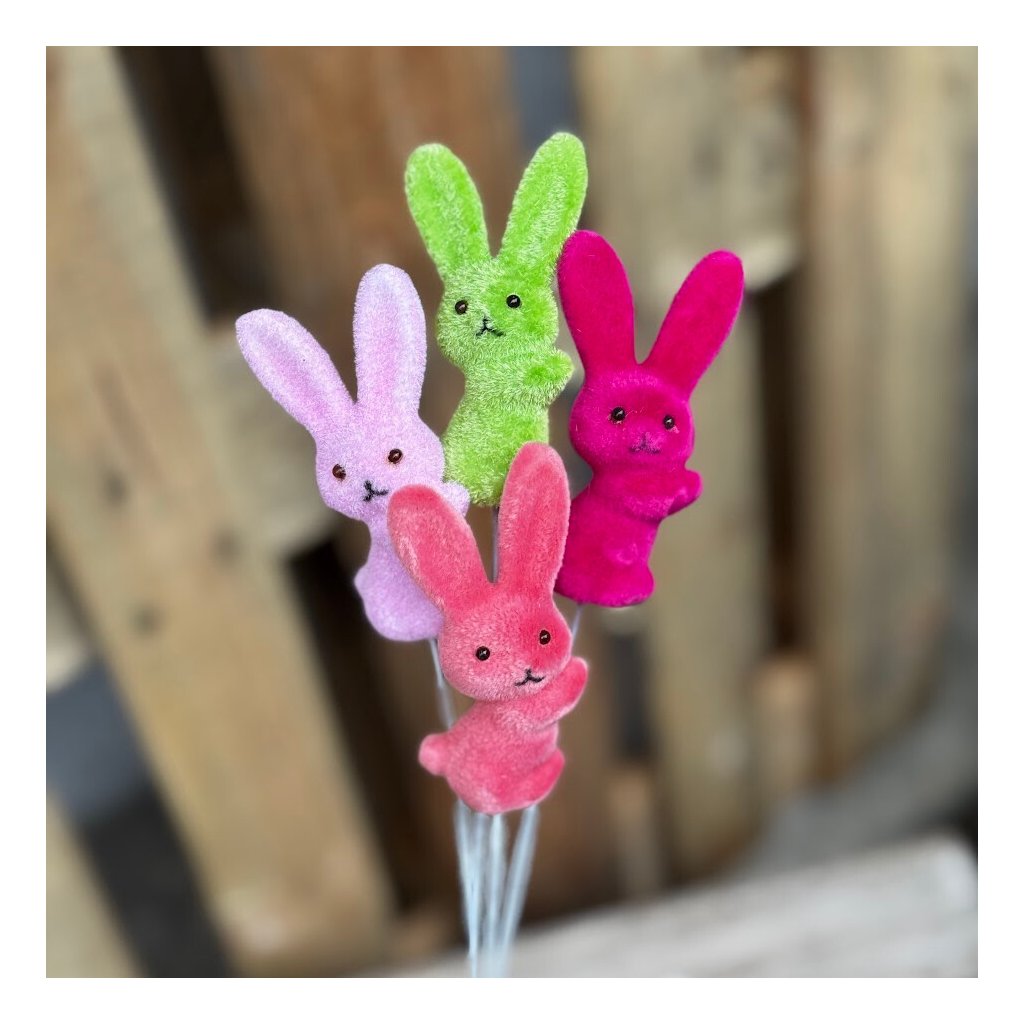 VÝPREDAJ! Zamatový zajkovia ako zápich 4ks dokopy v mixe farieb.