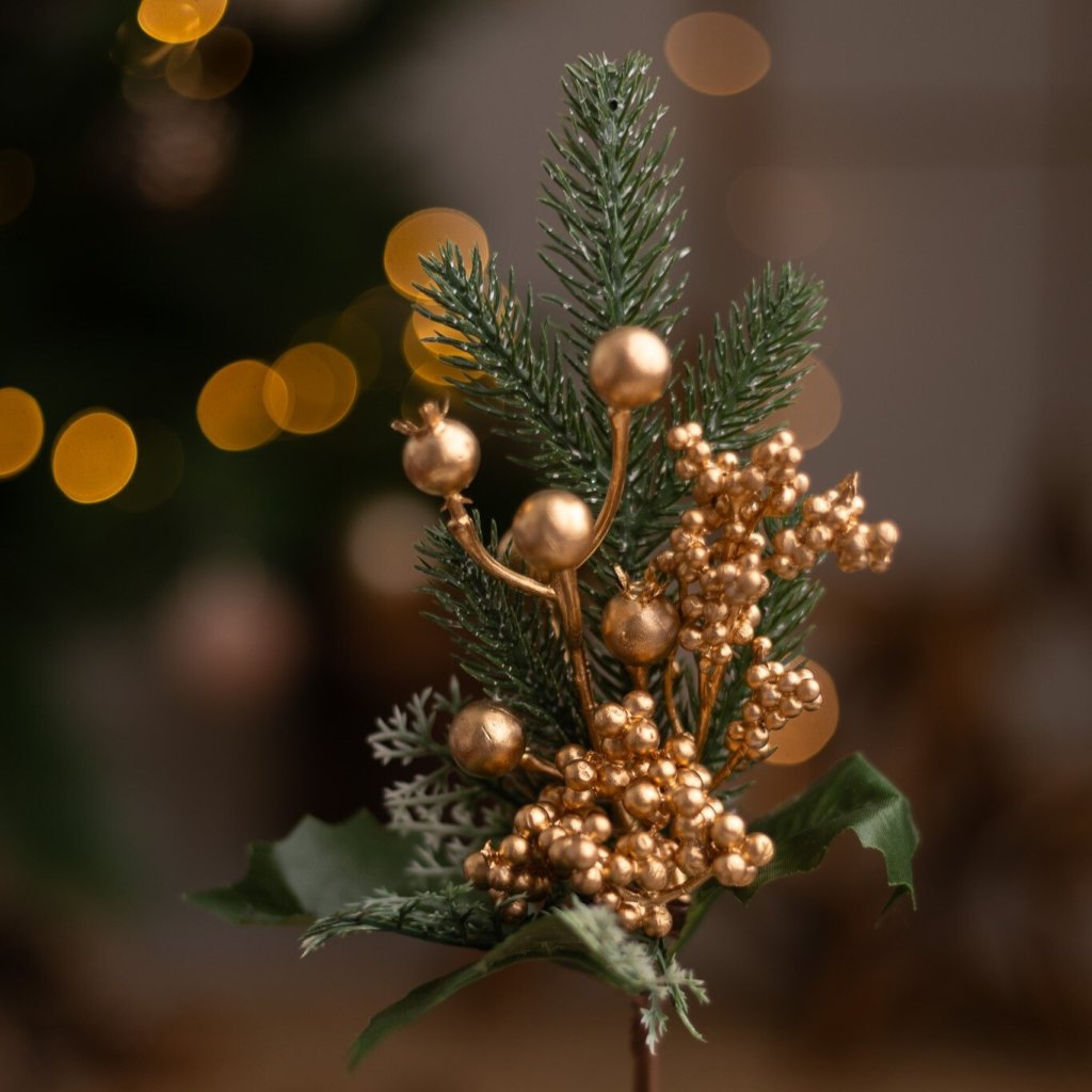 Zápich zlaté bobuľky rôznej veľkosti 26cm. Vhodné ako doplnok vencov a vianočných aranžmánov.