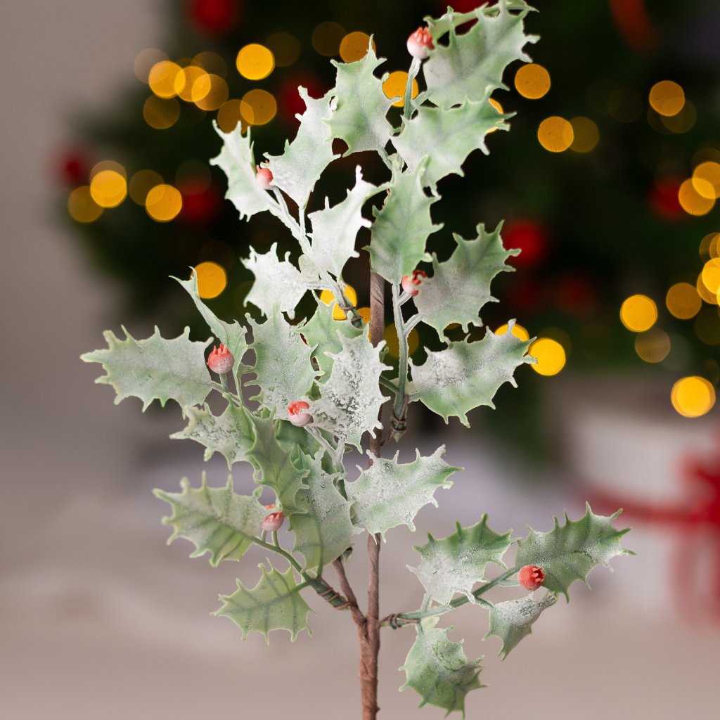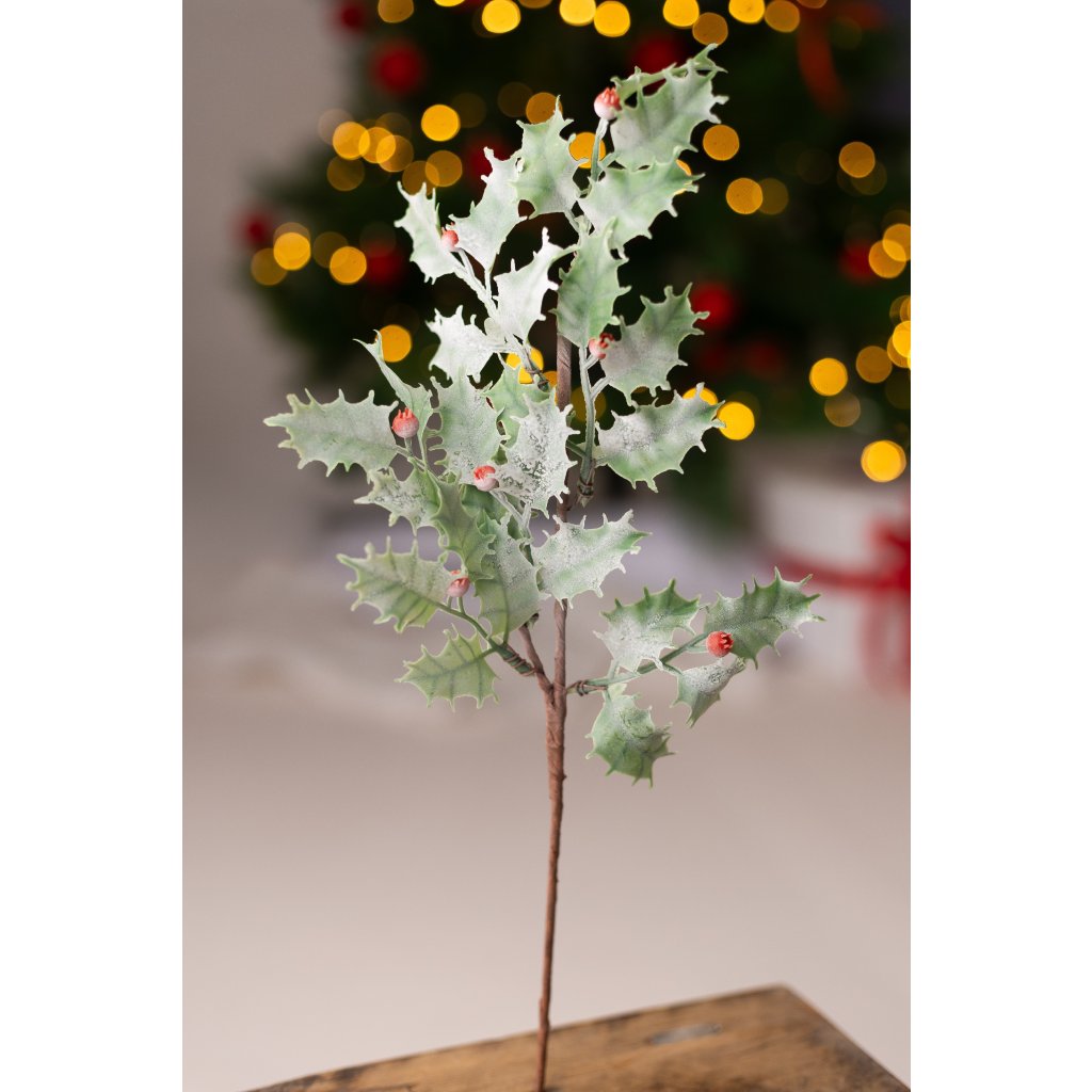 Konár zasnežená mahónia s červenými bobuľkami je ideálny pre vianočné dekorácie. S výškou 41 cm prináša do vášho domova príjemnú atmosféru. Umelé kvety sú vyrobené z kvalitných materiálov, ktoré zaručujú dlhú životnosť. Tento konár je skvelou voľbou na ozdobenie vianočného stromčeka alebo ako súčasť aranžmánov.