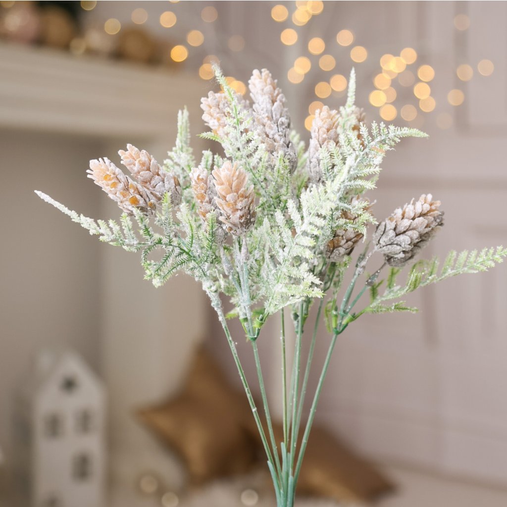 Zasnežená plumóza s hnedými šiškami 37cm.