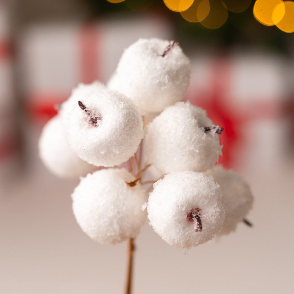 Zápich zasnežené jabĺčka biele 13cm / priemer 4 cm. Zväzok 10ks.