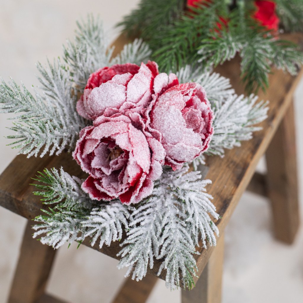 Zasnežený Ranunculus na štipci ČERVENÝ 18cm