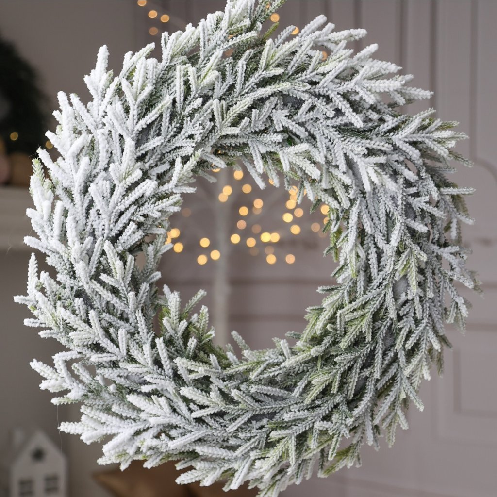 Zasnežený strapatý veniec 42cm