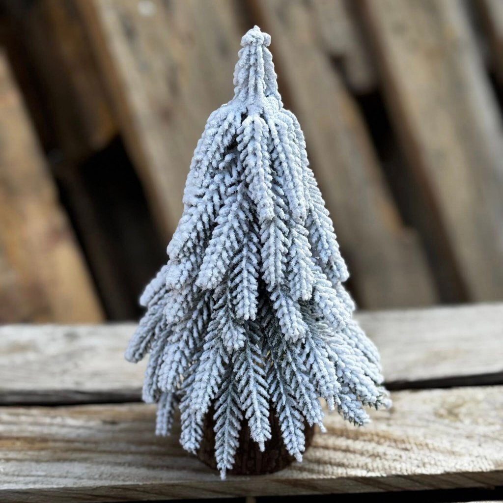 Zasnežený stromček na pníku 20cm, šírka 12cm. Perfektný do aranžmánov.
